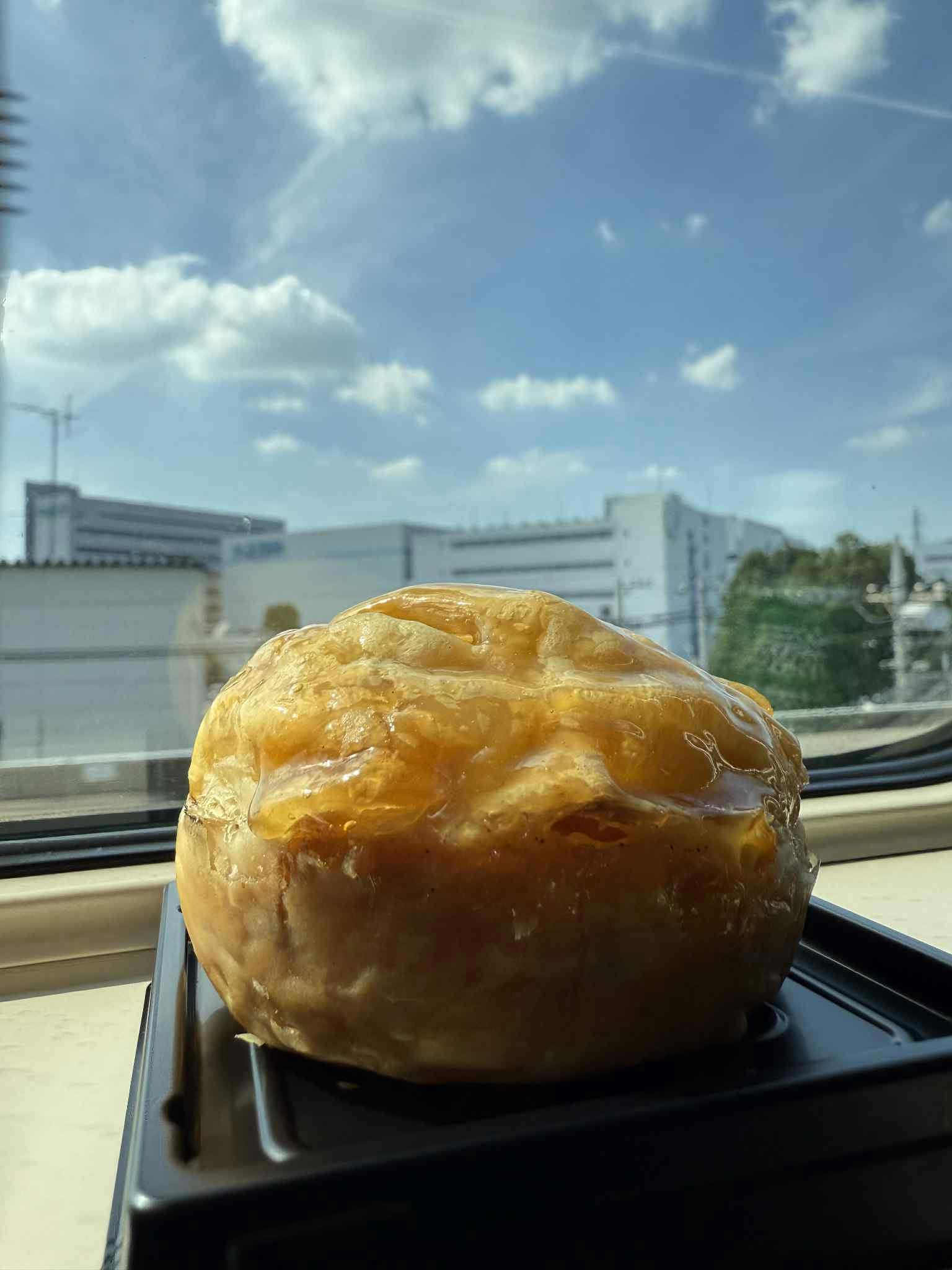 たまたま、別車両に乗車していた友人から(SNSでこの車両で仕事しているーーとやりとりをしていたのです)、なんとサプライズで”アップルパイ”の差し入れが、たった今ありました。