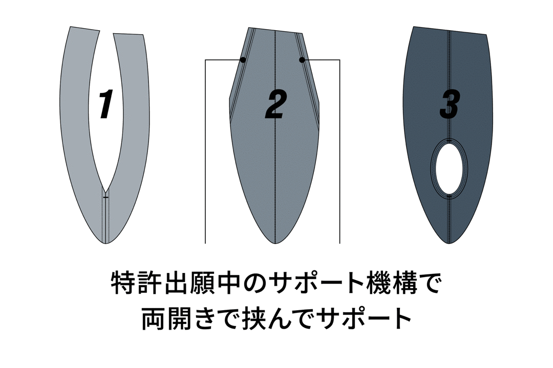 人間の身体は平らでは無く凹凸があるので、平らな縫製ではどうしてもどこかが引っ張られるとどこかに無理をきたしてそれが食い込みや圧迫、揺れに繋がることが分かったんです。