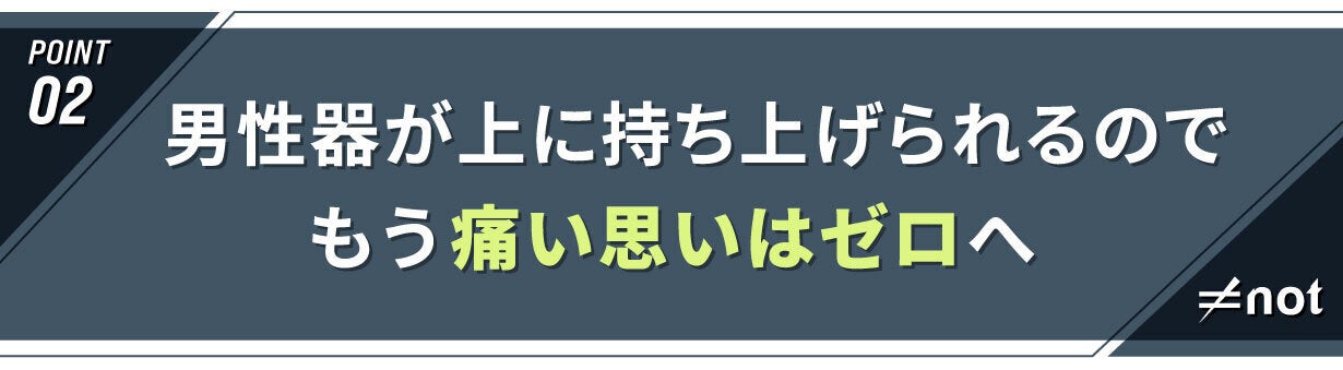 また、特許出願中のポジション保持機能「Go Up Support」により男性器を上向きに保ち、上方に持ち上げながら立体的に固定することで男性器の揺れ/ブレが抑えられポジションが気にならなくなり、さらに足上げ動作も軽くなります。