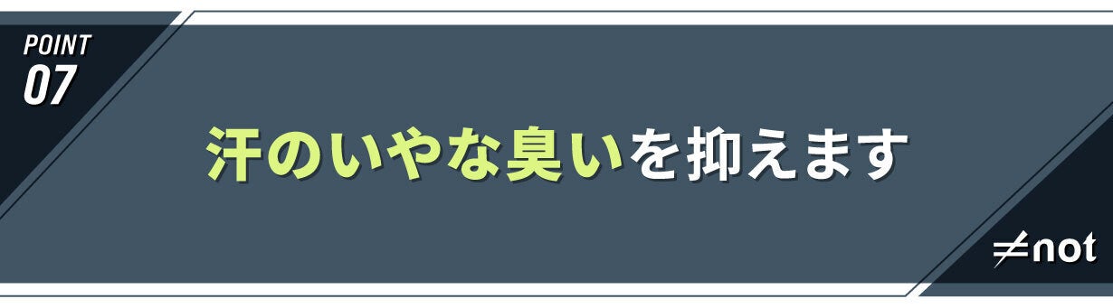 繊維表面にイオン化状態を作り悪臭物質を吸着する特殊素材を採用したことにより汗の嫌な臭いを抑えます。