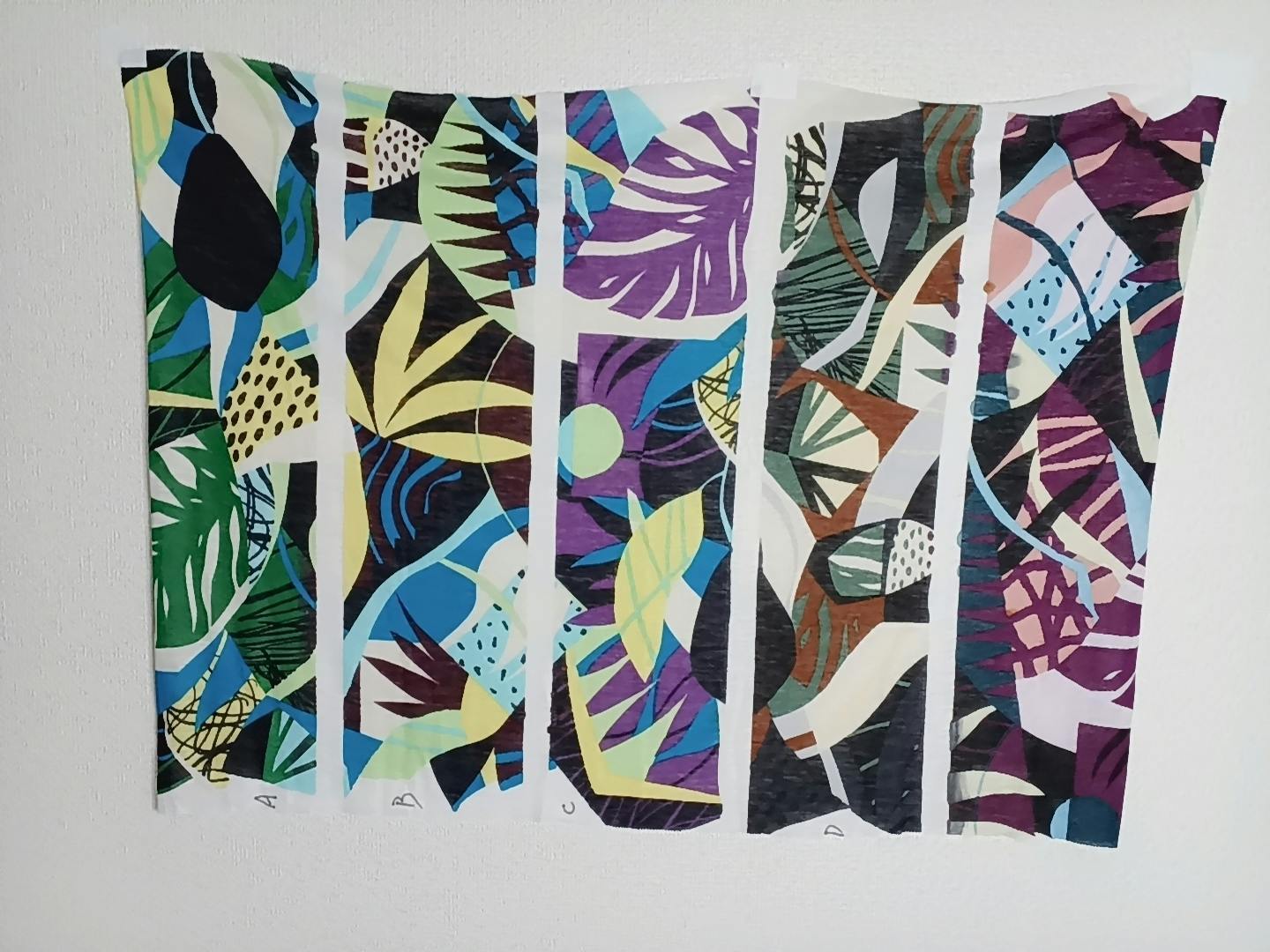 この柄の時は、7版(7色)の柄を、5パターン試刷りして頂いて、