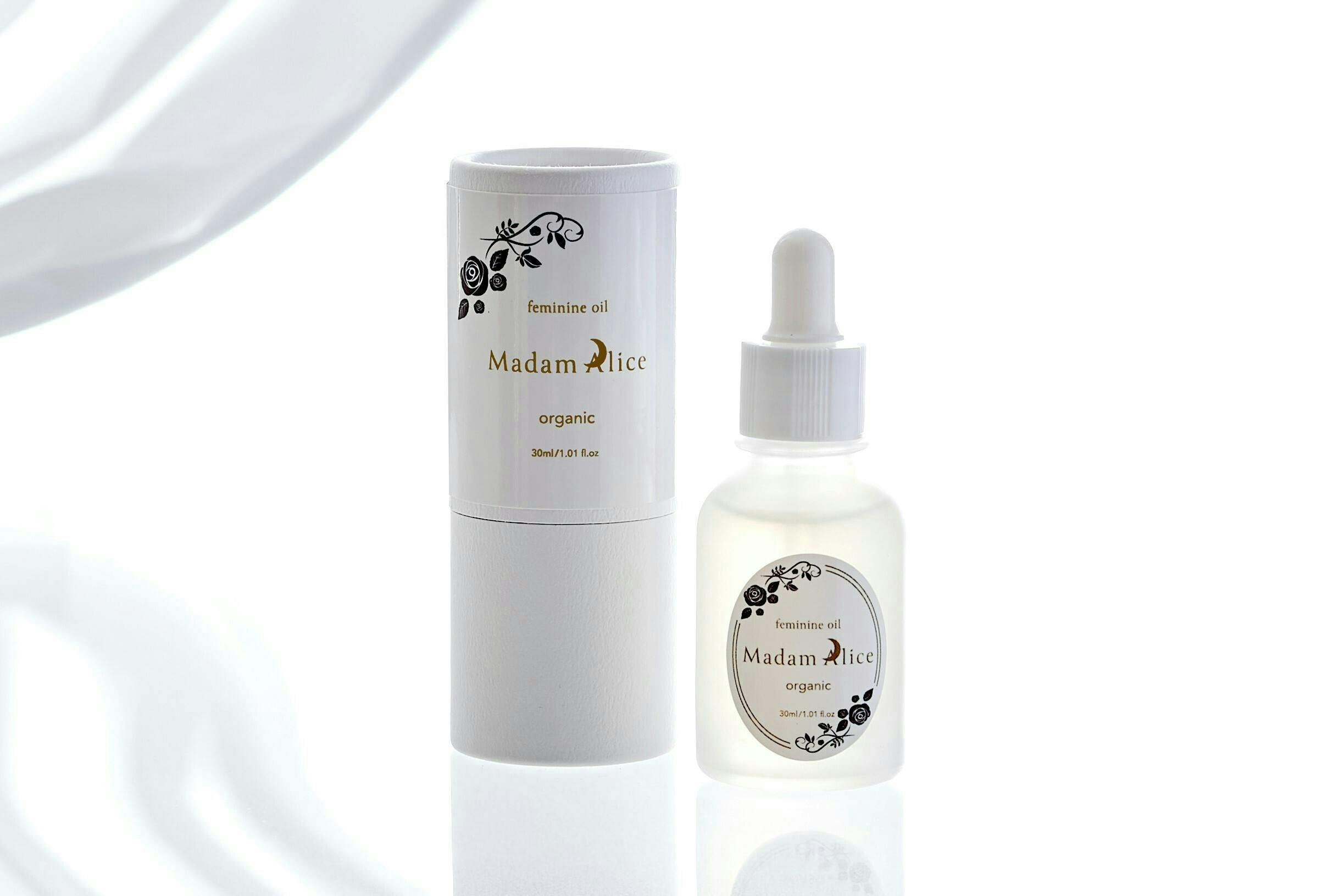 Madam Aliceのオーガニックフェミニンオイルは、デリケートゾーンのケア、いわゆるフェミニンケアのためのオイルです。