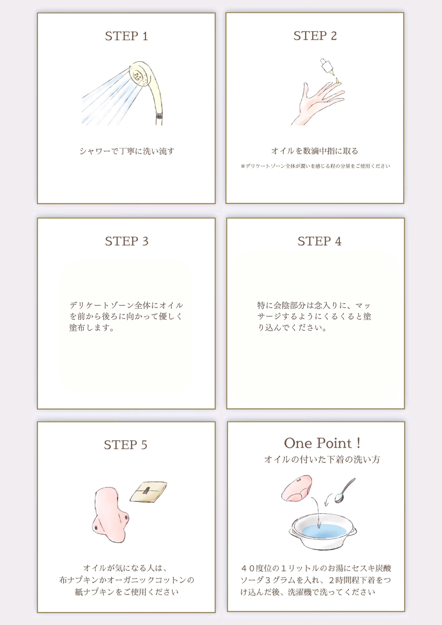また、妊娠中、妊娠を希望している方は排卵日前後のオイル使用は避けてください。