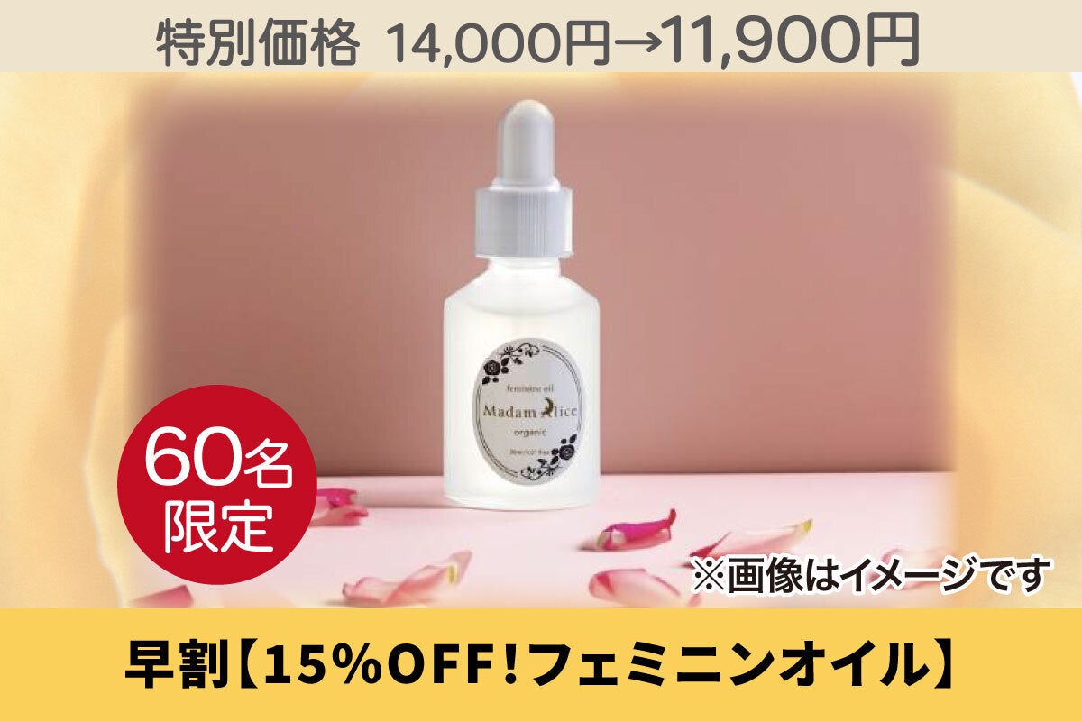 お勧めはなんといってもMadam Aliceのオーガニックフェミニンオイル!この機会にぜひ、Madam Aliceのオーガニックフェミニンオイルをお試しください。