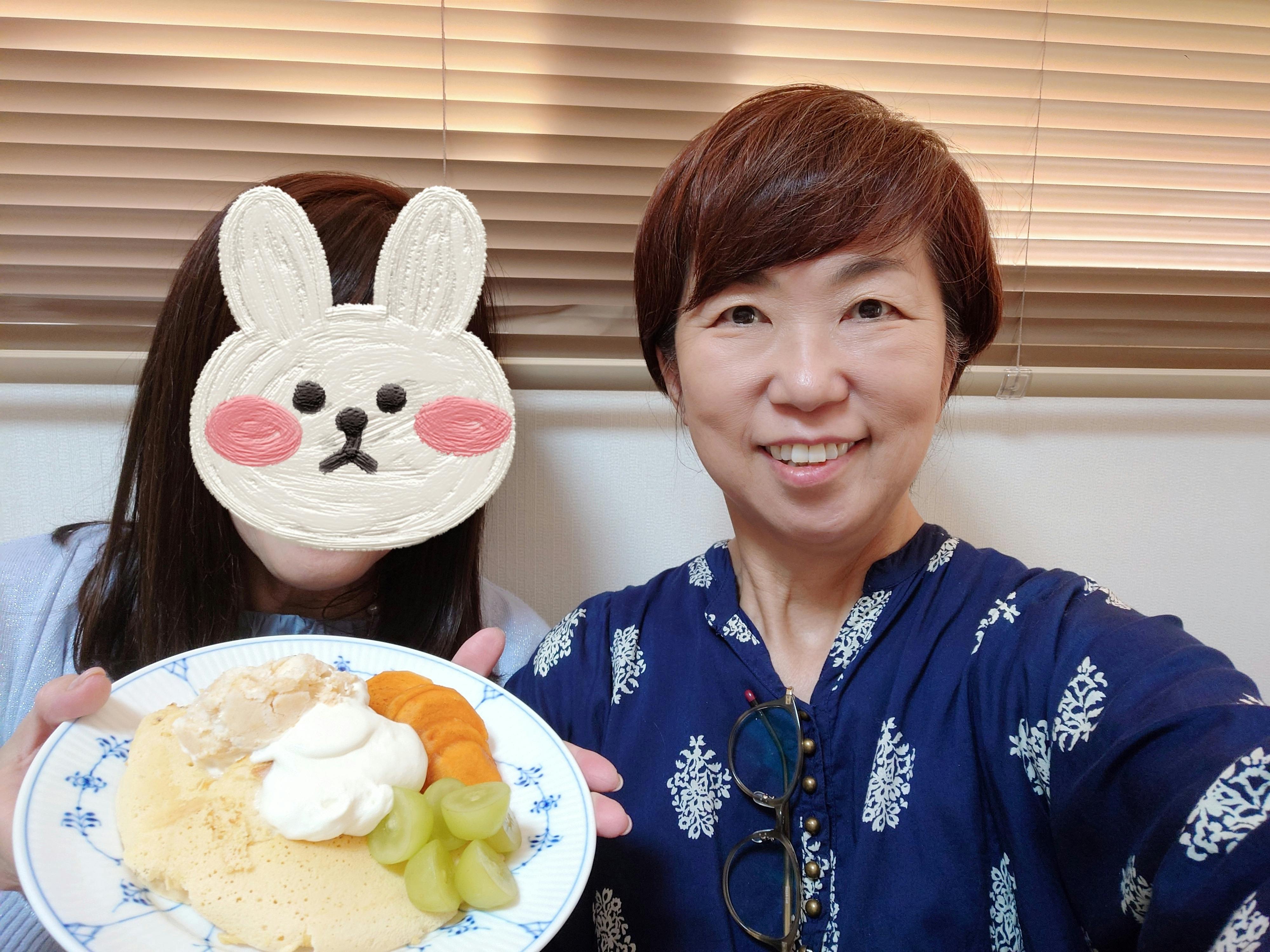 手に縒りをかけてパンケーキでおもてなしをと思い、初めて米粉のパンケーキの粉で作りました。