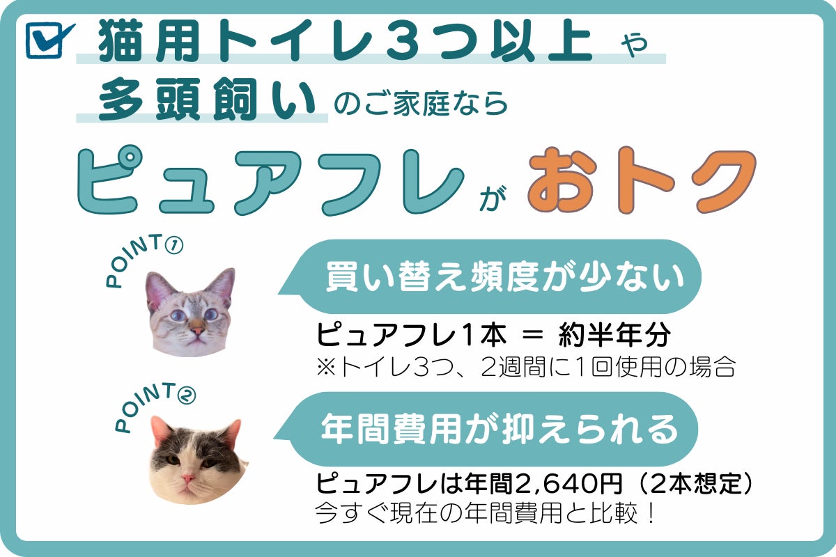 こんなお悩みをお持ちの猫用トイレが3つ以上あるご家庭なら、ピュアフレがおトクです。