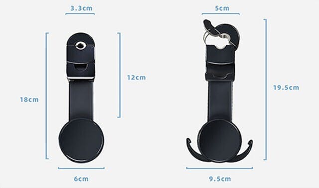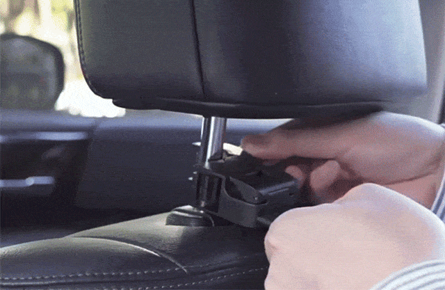 パッチン錠のように簡単にロックでき、ヘッドレストの金属棒に取り付けるだけです。(金属棒の厚さによって、3段階調節可能)
