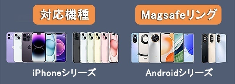 iPhone 12以降のシリーズでは直接ご利用いただけますが、Androidのスマートフォンなどご使用の場合は、付属のメタルリングを装着してご使用いただけます。