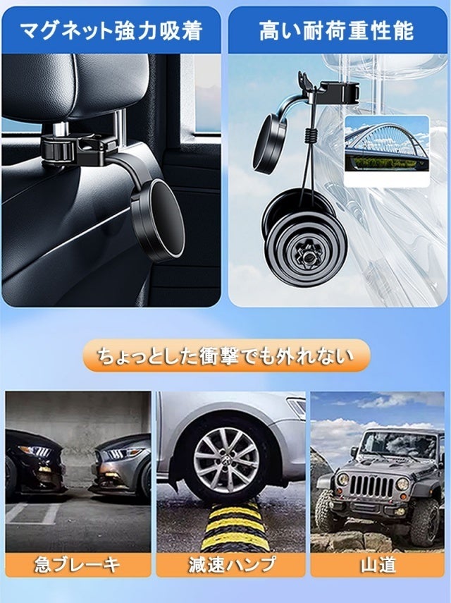 便利なマグネット機能と多機能性が特徴で、荷物の安定掛けや車内整理に優れたアイテムです。