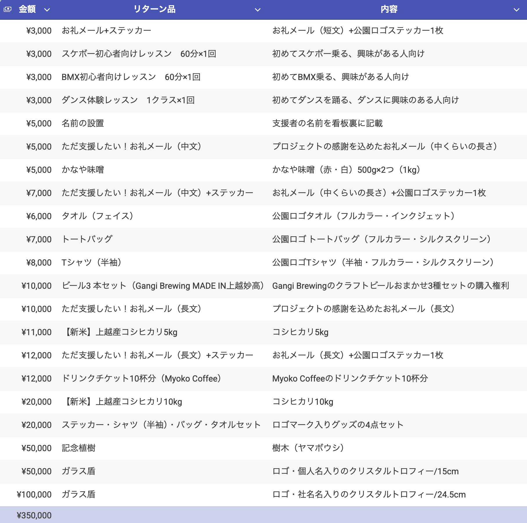 2025/08/05 14:39いつも上越みらい公園プロジェクトを応援いただき、誠にありがとうございます。7 月 31 日をもちましてクラウドファンディングが終了いたしました。目標金額には届きませんでしたが、多くのご支援と温かいメッセージをいただけたこと、心より感謝申し上げます。目標未達のため、現状以上の新設・拡張は直ちには実施できませんが、いただいたご支援で立替分の一部を補填し、現行設備の安全維持を最優先に進めます。今後も引き続き、企業協賛、スポンサー募集、イベント開催などを通じて運営資金を確保し、将来的な設備拡充を目指します。■ 今後の資金調達方針⚫︎ 企業協賛・スポンサーシップの継続⚫︎ 助成金・補助金の調査・申請の継続⚫︎ 有料イベント(体験会・ミニ大会など)の開催■ ご協力のお願い協賛してくださる企業・団体さま、またはご紹介いただける方を募集しています。これからも「みんなで育てる公園」を目指し、持続的に運営してまいります。今後とも温かいご支援・ご声援をよろしくお願いいたします。 もっと見る