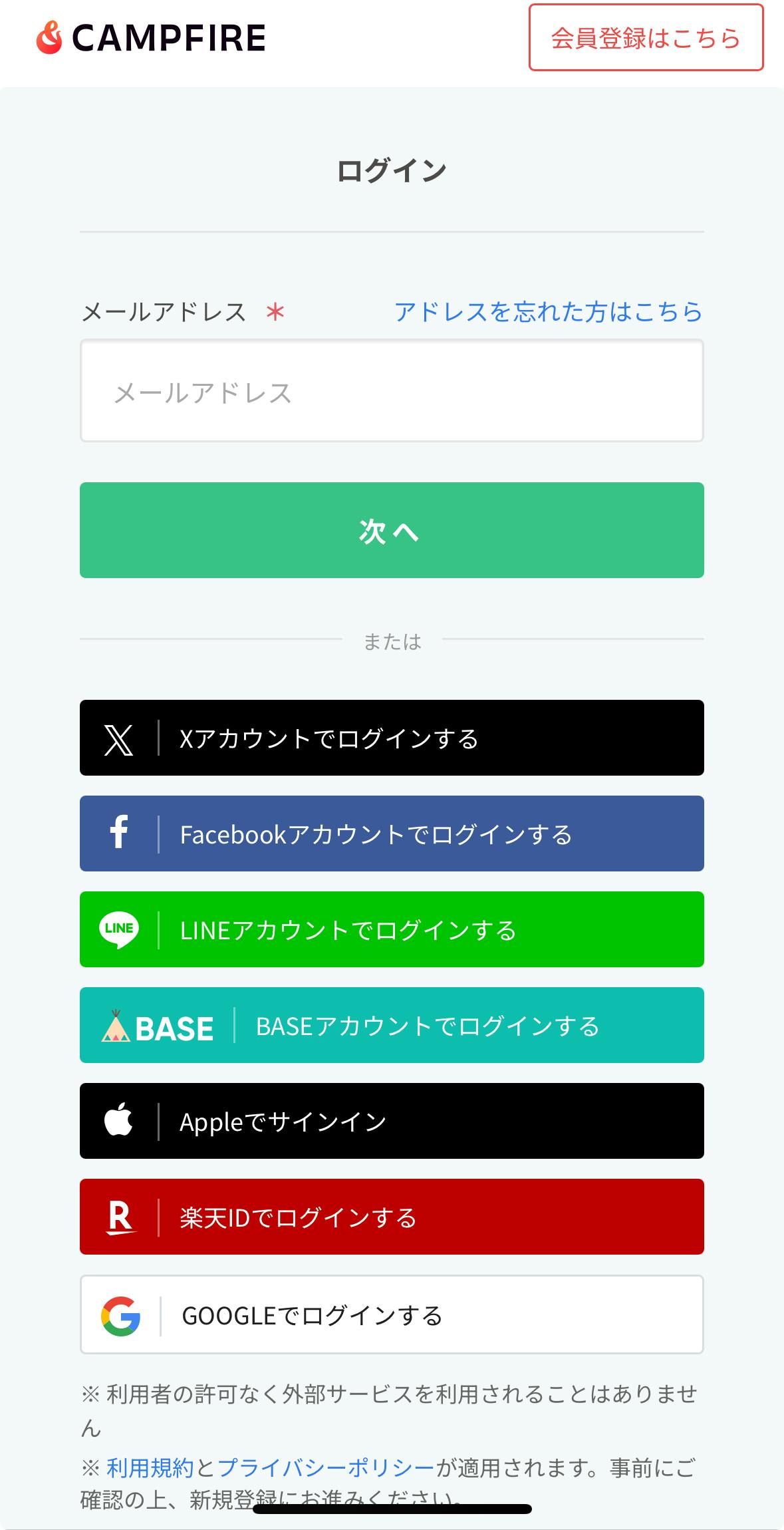 各種アカウントで新規会員登録やログインも可能です