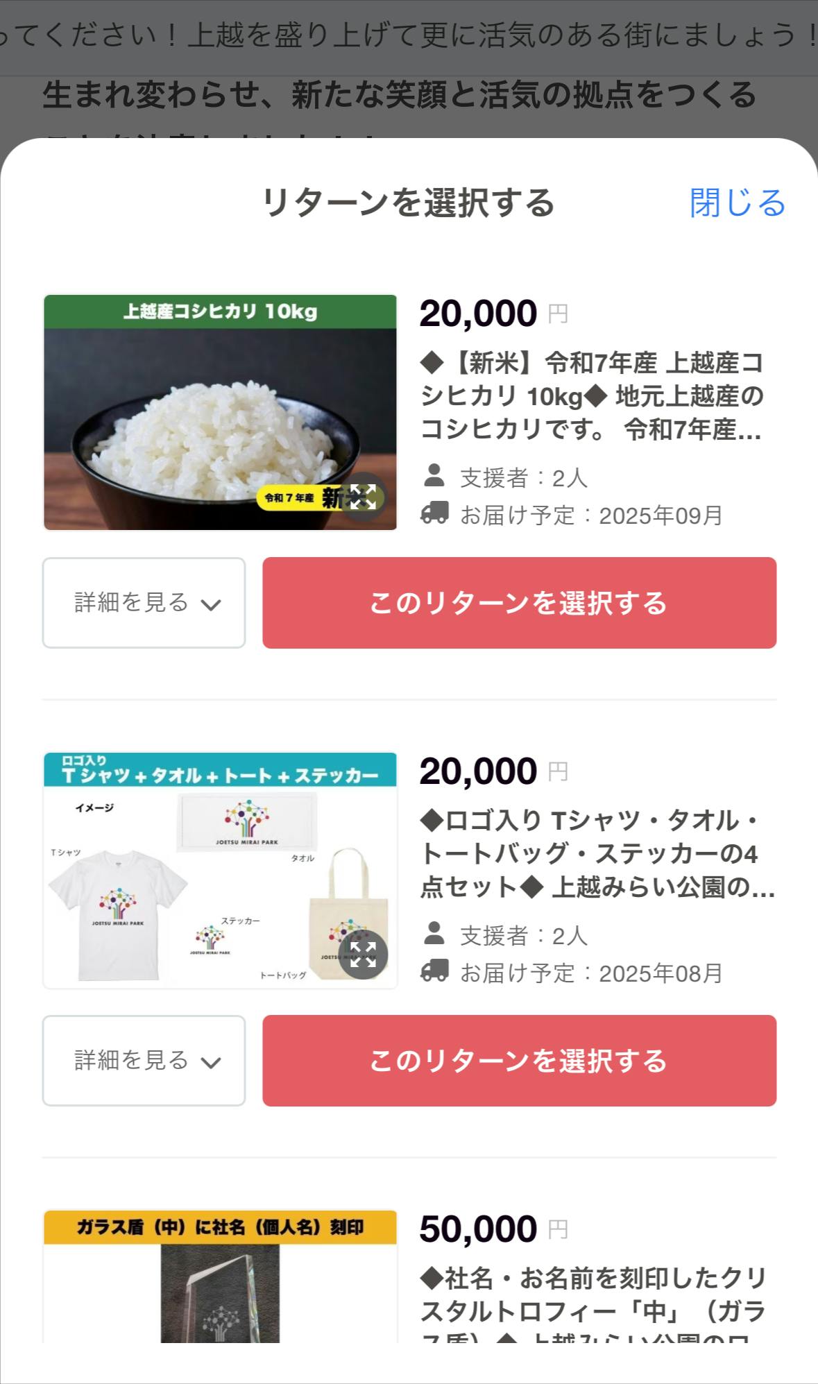 お好みのリターン品(支援コース)を選択してください