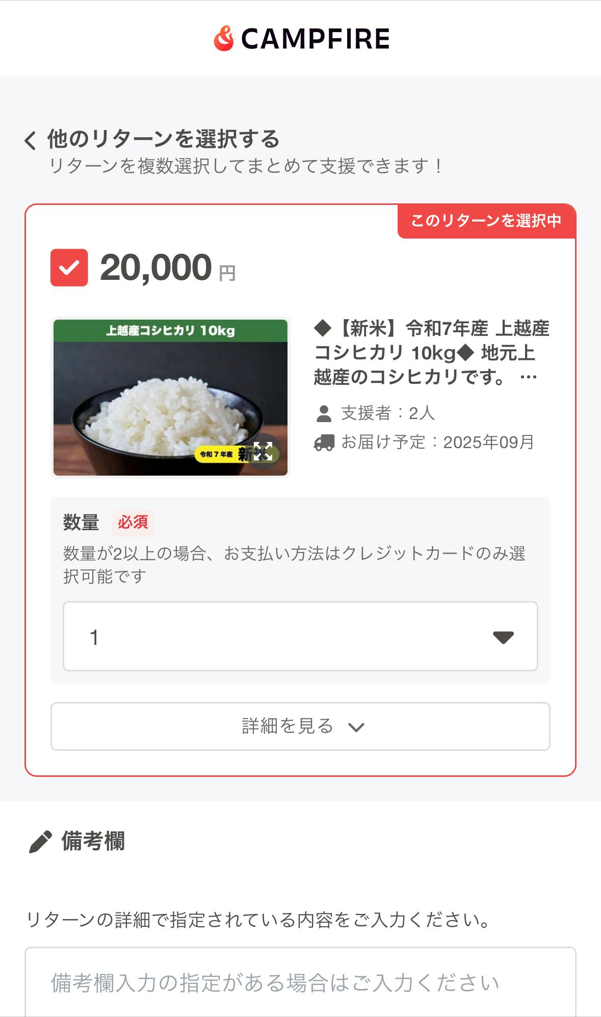 2.リターン(支援コース)を選択