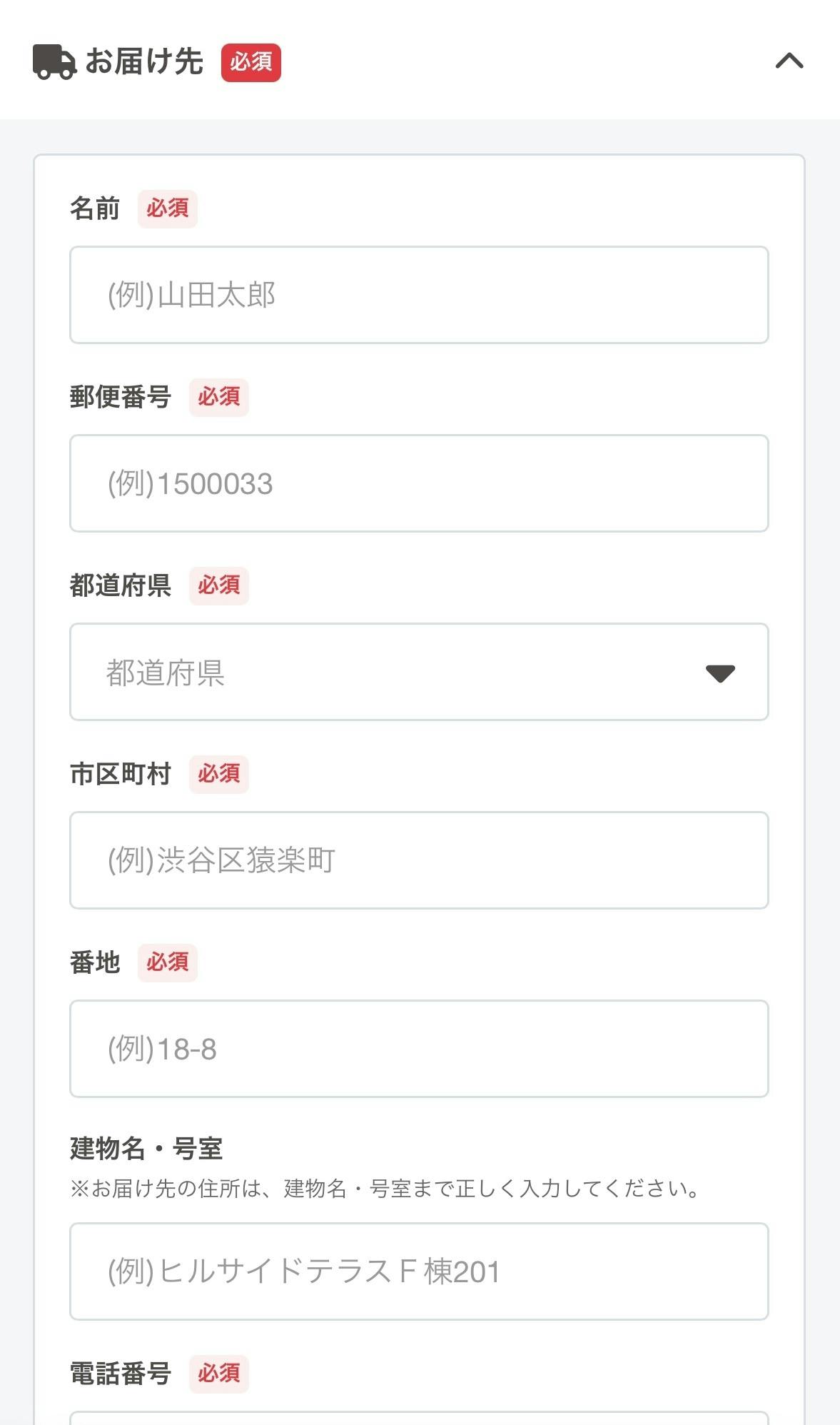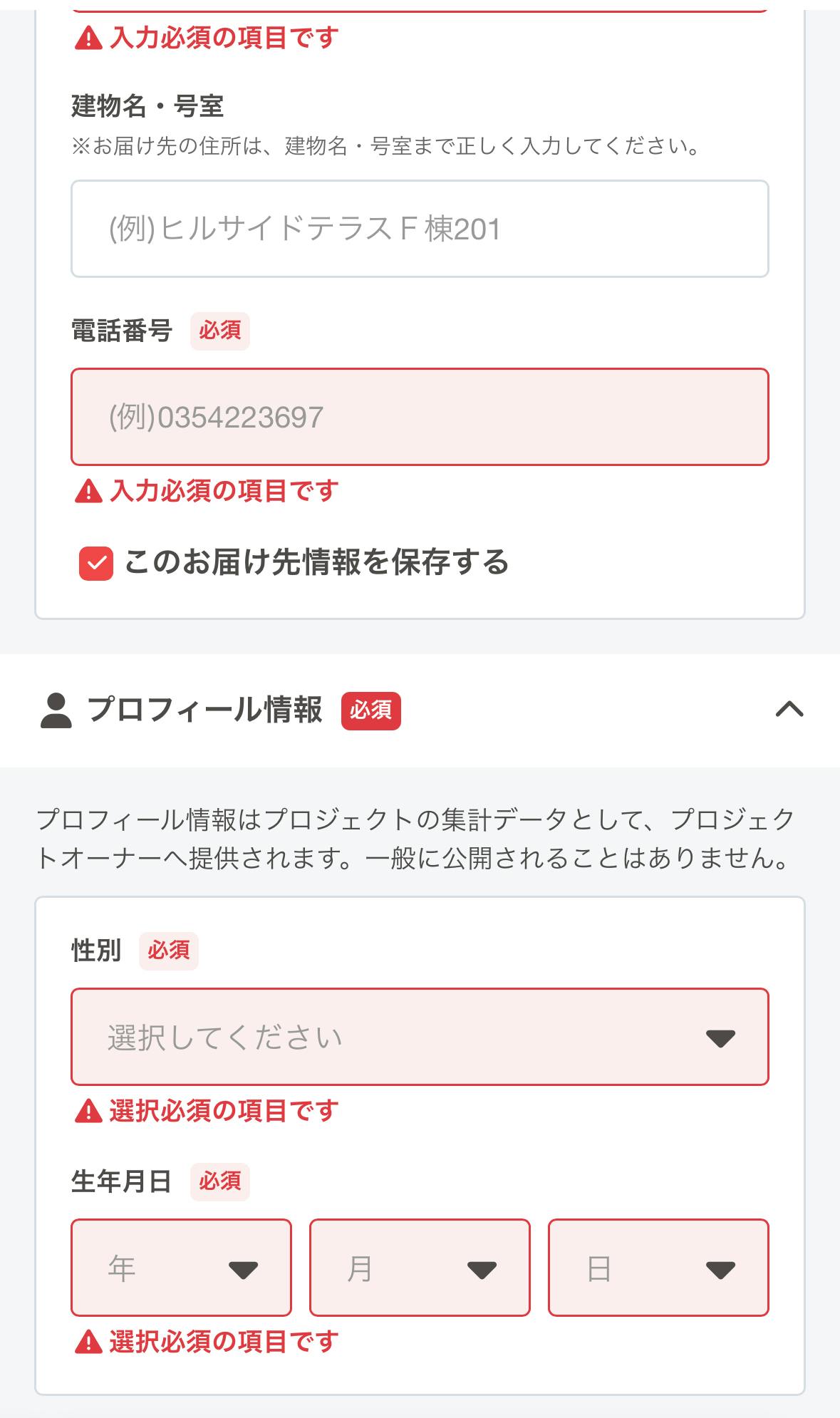 お届け先を入力・プロフィールを入力してください