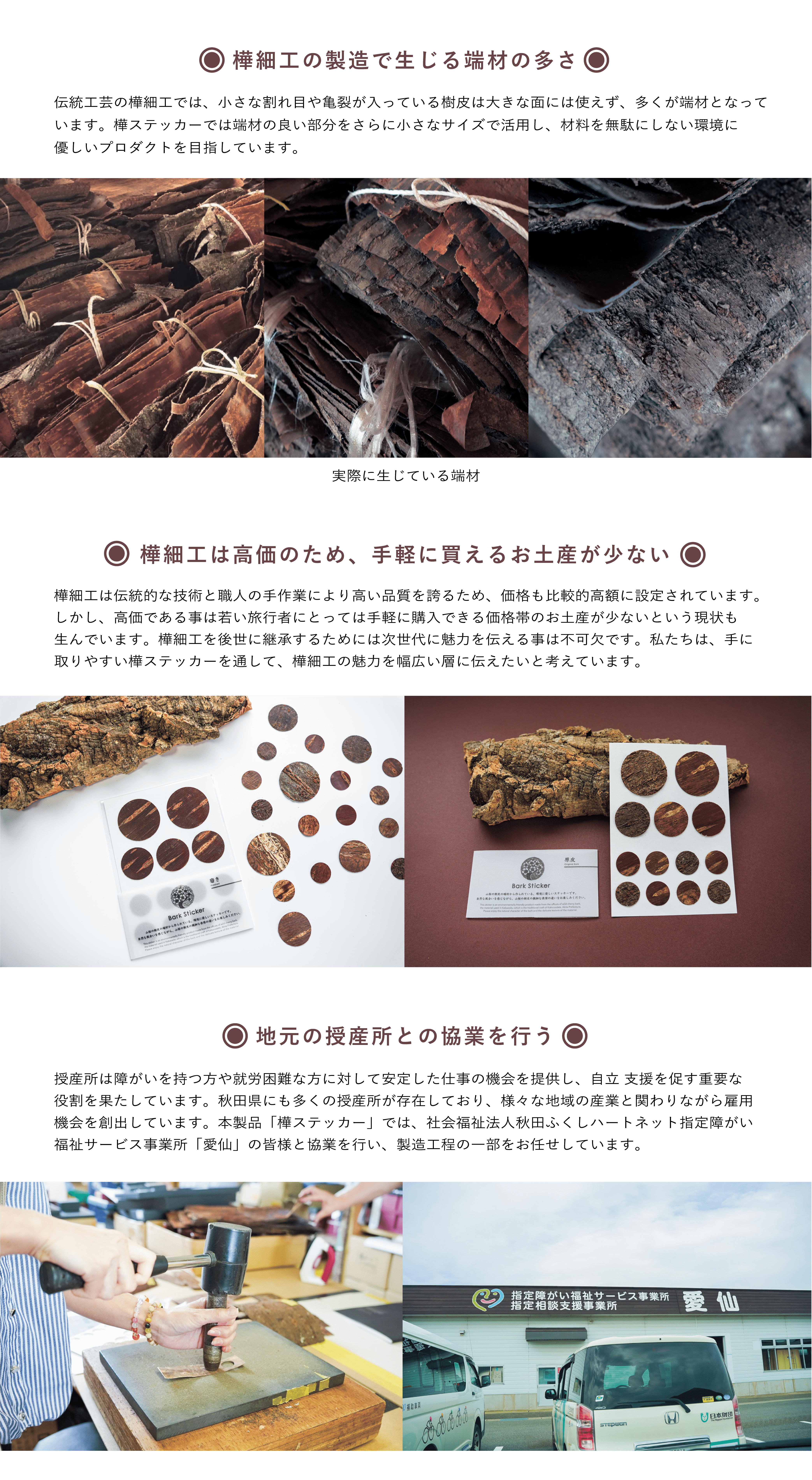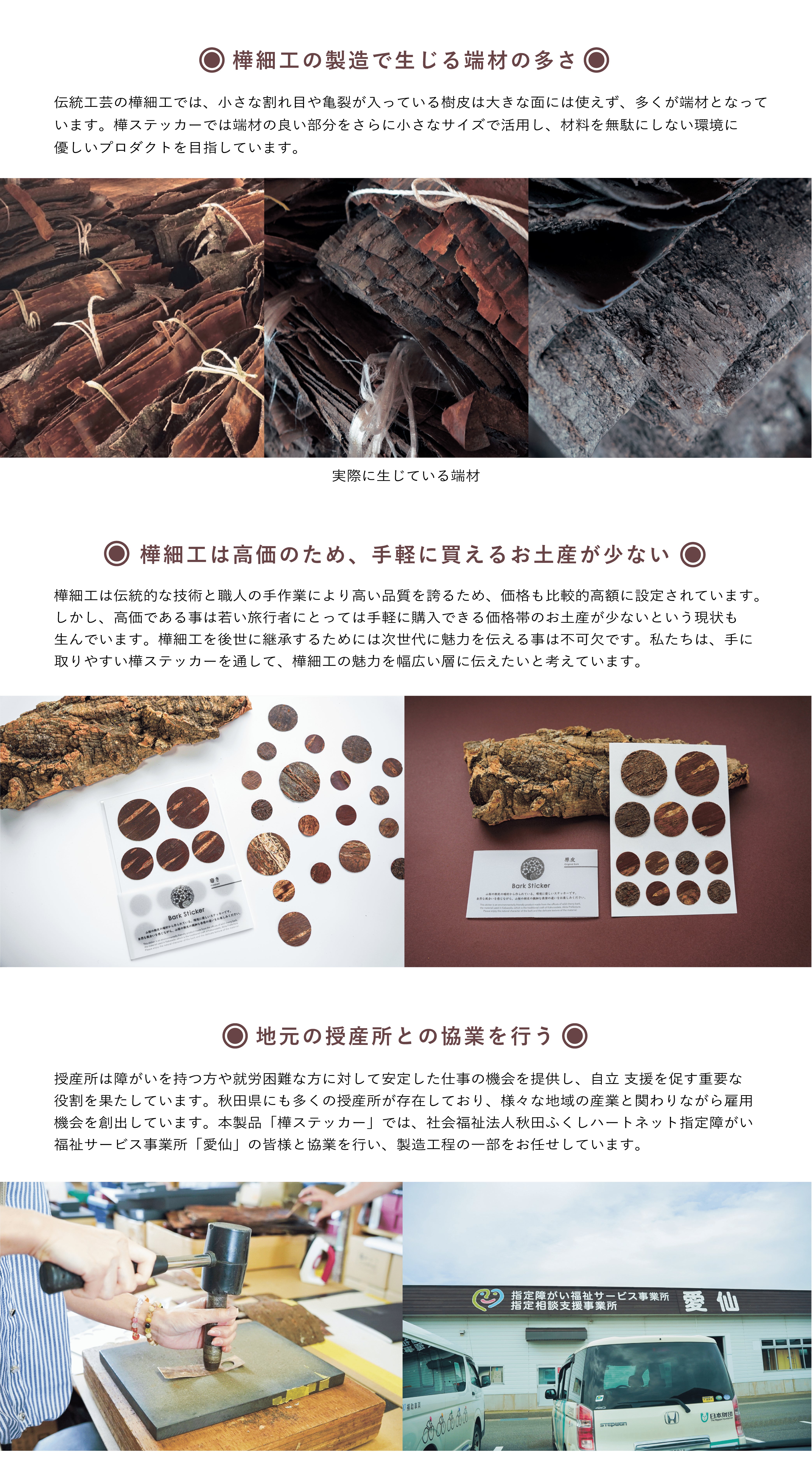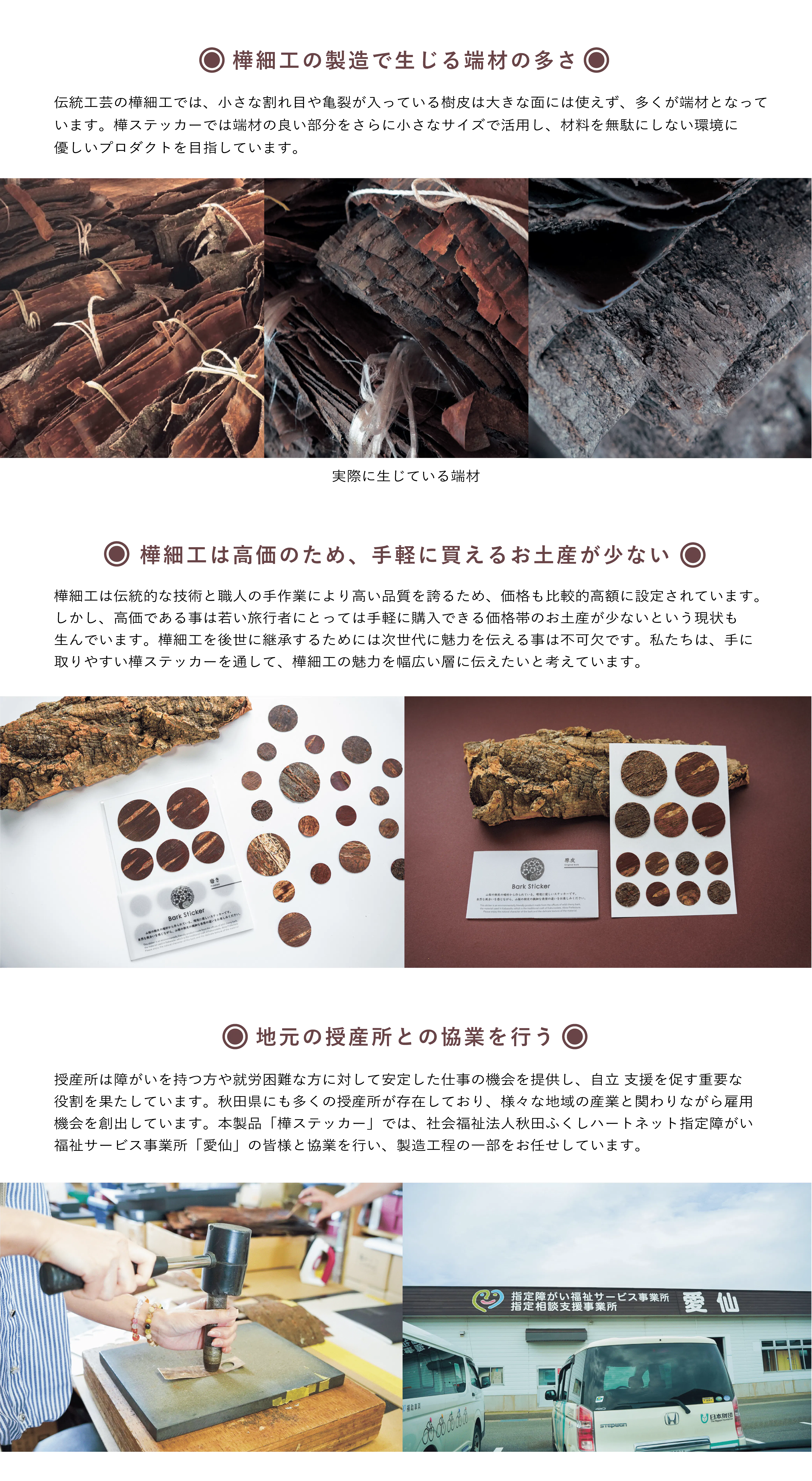 「秋田の伝統工芸である樺細工の魅力の一部を、手軽に手に入る樺ステッカーを通して全国に広めたい。」