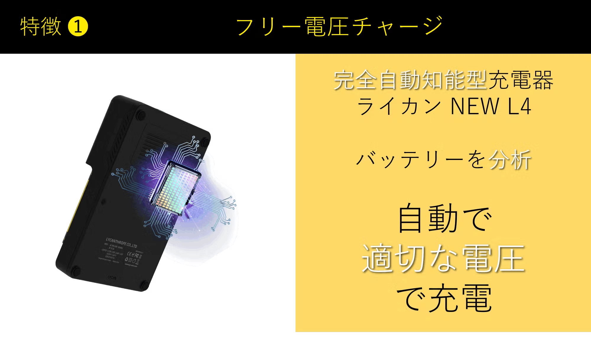 充電池をスマートにまとめる「LYCAN NEW L4」フリーボルトチャージャーでスマートにチャージしましょう!