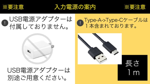 ※本商品にはアダプターが含まれておりません。お持ちのUSB充電アダプターを使用し、電源をお繋ぎください。※USB充電アダプターは、2A以上の仕様のものをご使用ください。