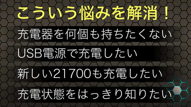 各充電池の規格に合わせ充電器を何個も持ち、毎回確認しながらチャージーしなければならないし、そのせいで整理も大変だし、常に周りには色んな充電器が溢れていませんか?