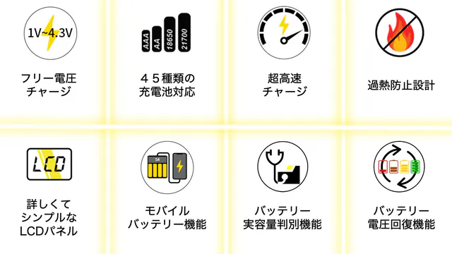 何十個、何十種類のそれぞれ違う形の充電池をしっかりチャージーできるか不安ですよね。