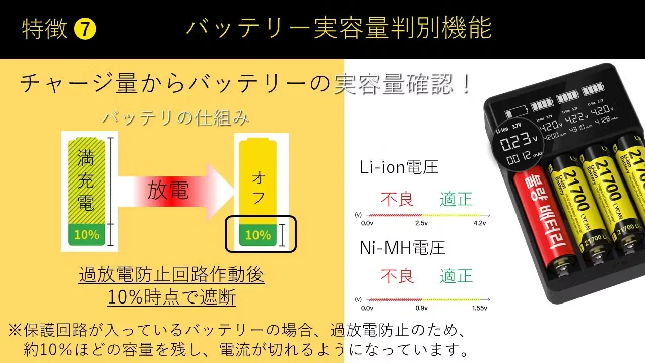 ※電池そのものの性能(回路や内蔵チップ)に問題がある場合、電圧回復できないことがあります。