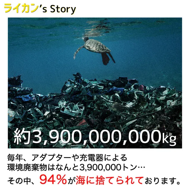 ダイビング歴10年。ダイビングマニアのLYCANのCEO・ミョンは、技術の発達につれ、急速に増えていく海洋ゴミの現実を目の前にし、その深刻さを実感しました。人間の生活の中で電子機器は欠かせない…だが、これ以上ゴミを増やしてはいけない。その根本的な原因を一部生み出しているメーカーとしてほんの少しでも役に立てることはなんなのか今我々にできるのは、取りあえず、プラスチック製品を減らすことだと気付きました。複数の充電器を1台にまとめることができれば、少しでもプラスチックゴミを減らすことができ、プラスチックゴミで苦しんでいる地球と動物たちを救えるだろうと!これをきっかけにLYCANは今回の商品を開発することになりました。引き続きLYCANはこれからも地球環境に優しい商品が開発できるように努力していきます。