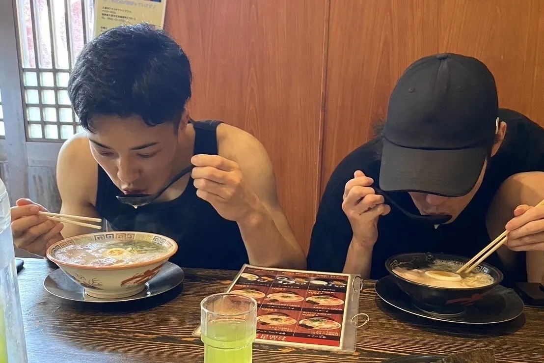 ↑福岡で豚骨ラーメンを食べる齋木大河