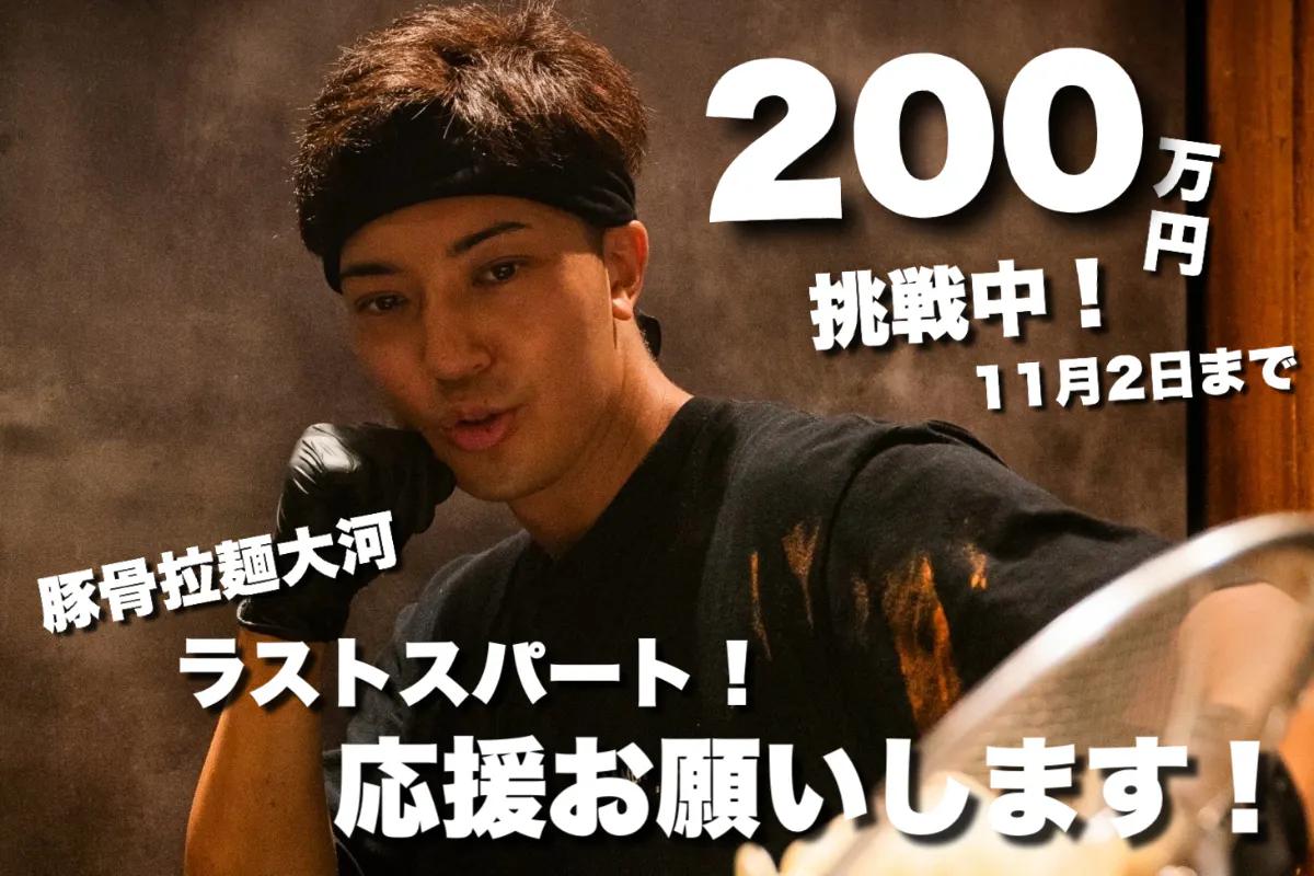 2024/10/26 14:48ファーストゴール100%を達成いたしました!本当にありがとうございます!【プロジェクト達成のお礼】 皆様のおかげで、プロジェクトを遂行するために掲げさせていただいていた目標金額150万円を達成することができました!本当にありがとうございます!ご支援いただいた資金は大切に使わせていただき、お客さまに美味しい豚骨拉麺を味わっていただけるよう、全力で準備して参ります。しかし、クラウドファンディング終了まであと数日ありますし、ここからは”ネクストゴール”に挑戦させていただきます!ネクストゴールは200万円!!先日追加のリターンをいくつか追加したのでそちらもぜひご確認ください。本プロジェクト最終日までICHI一同全力で参ります!引き続き、皆様の熱い応援、ご支援よろしくお願いいたします! もっと見る