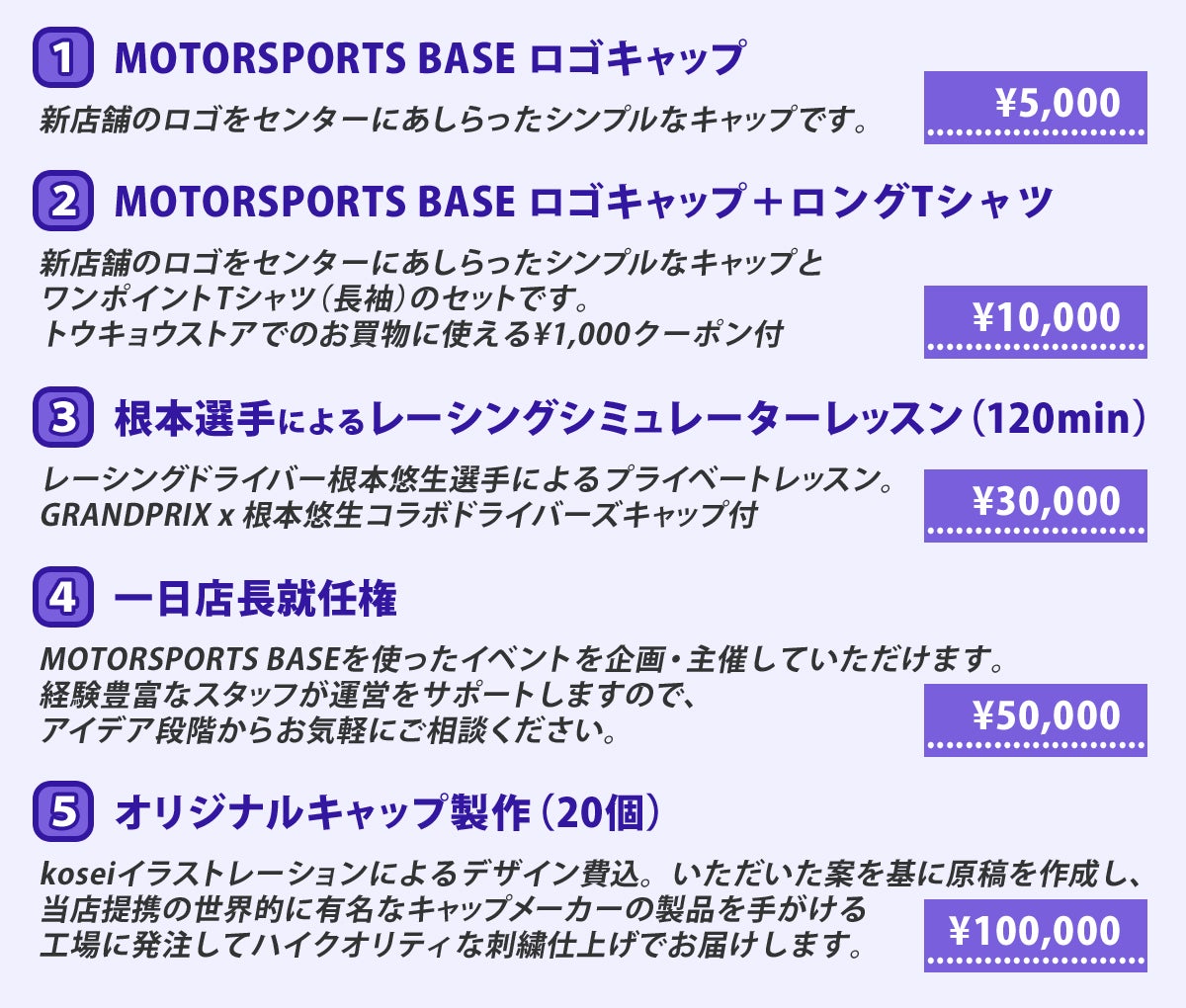 モータ―スポーツが好きで、 様々な立場でモータースポーツに関わる人たちが集まれる秘密基地のような場所したい、という思いから【MOTORSPORTS BASE】と命名しました。