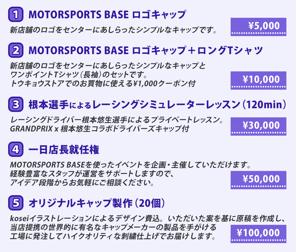 現在、シミュレーターの走行回数券を新たなリターンとして設定しております。