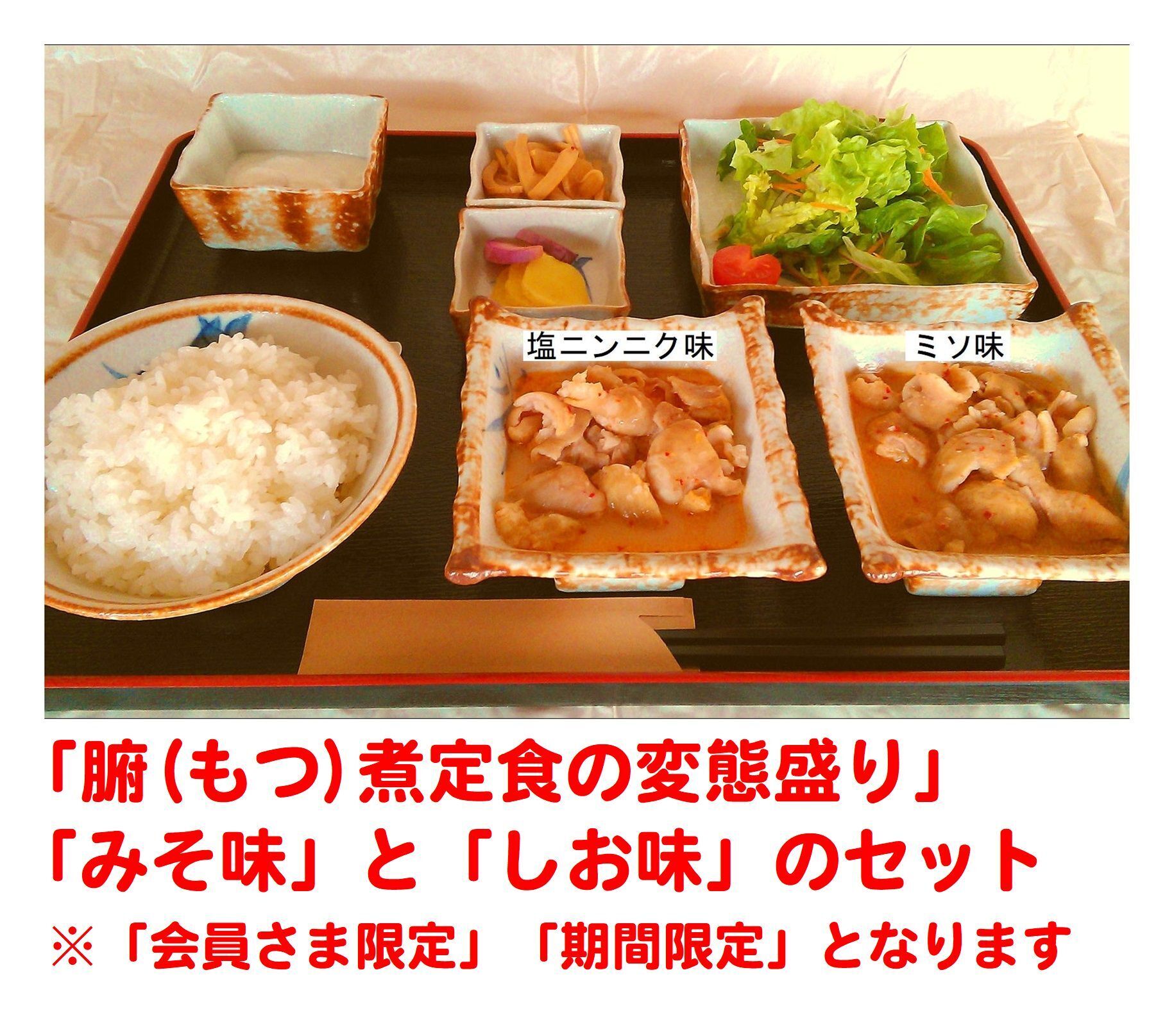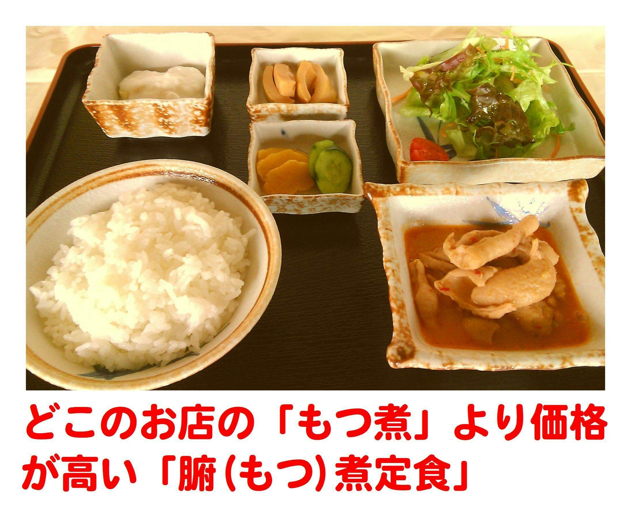 手作りで特殊な食材のため仕入が大量にできず「腑(もつ)煮定食」(大吟醸)は1日 約40食、1週間で120食ほど