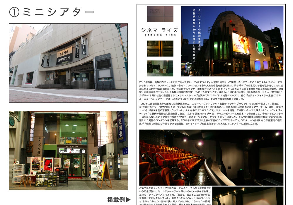 映画館で映画を観る事が好きな人のために、日本全国にある小さな個人館からシネコンまで、25年にわたり取材を行ってきて、現在は430館を超える映画館を掲載しています。それぞれの映画館は外観や館内の写真だけではなく、館主さんや従業員さんのインタビュー記事など貴重な情報を収録しています。中には既に閉館してしまった映画館も数多くあります。そこでこの機会に今まで紹介してきた全国の映画館の記録をPDFデータにまとめようと考えました。