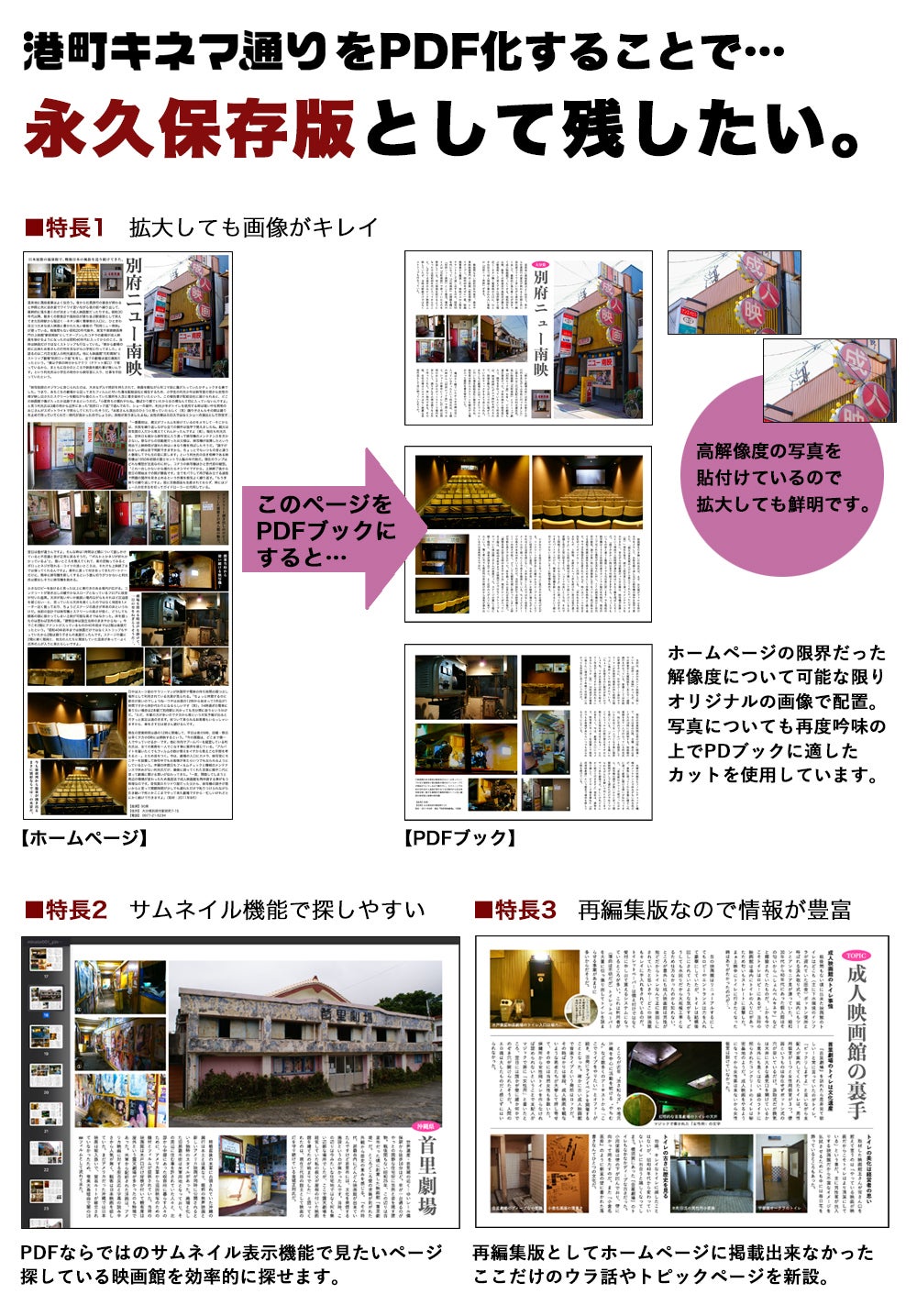 そこでホームページ開設から25年を迎えた今、原点に立ち返って今まで取材してきた膨大な映画館の記録を改めて見直して、ネット上に残すだけではなく高解像PDF化しようと考えたのです。今まで応援していただいている映画館ファンの皆さん、今回初めて興味を持っていただいた皆さんに、映画館の記録をPDFの永久保存版として遺させていただければと思います。