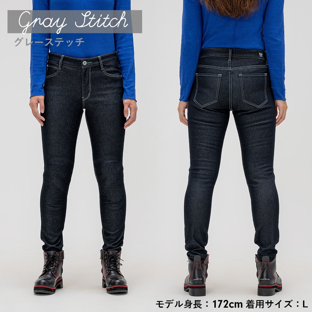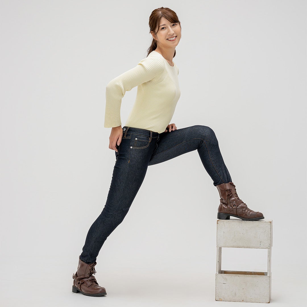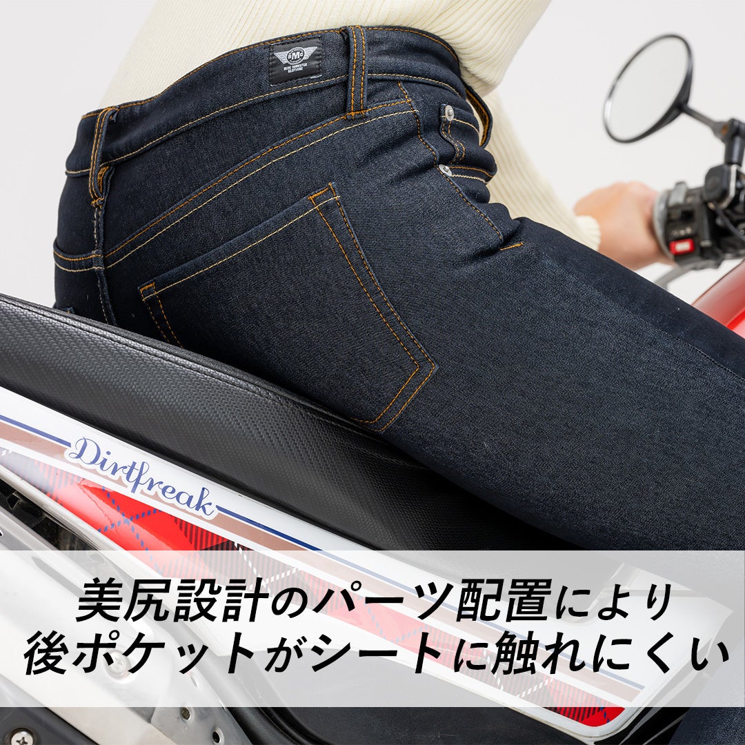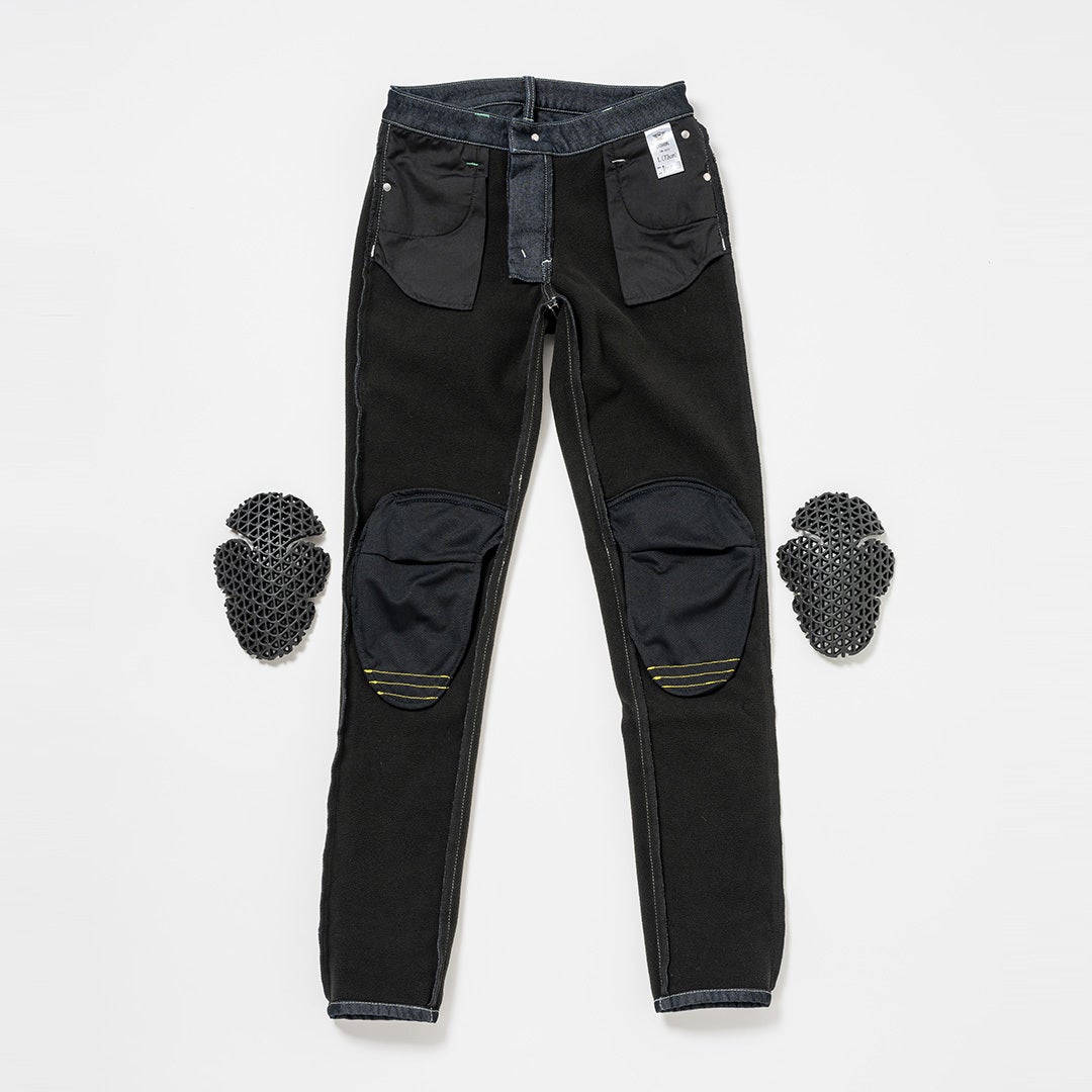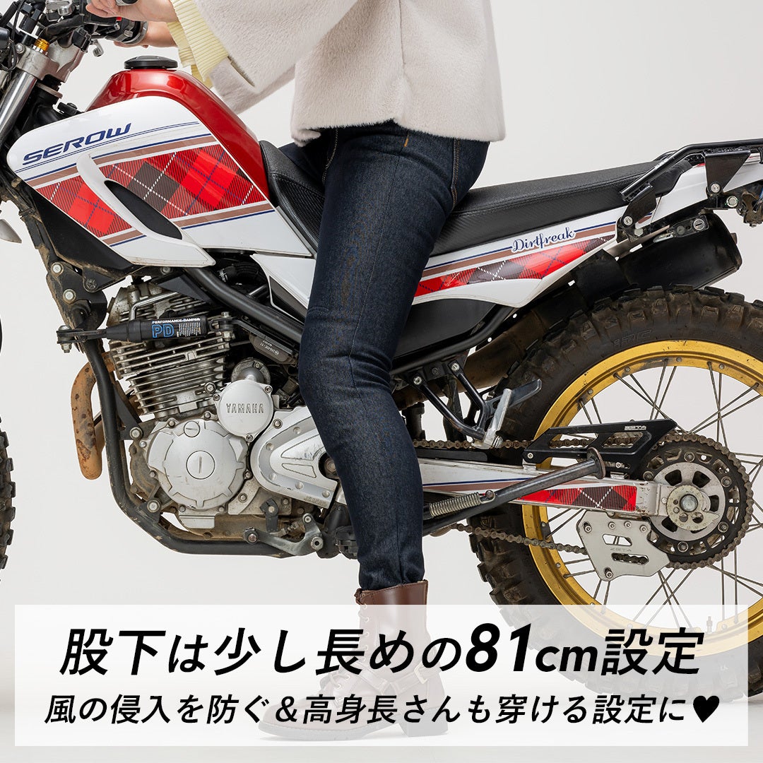 「ウエストサイズや股下サイズでオシャレなスキニーを諦めていた」女性ライダーに是非体験して頂きたいたいです!【オートバイ専用設計】なのでバイク乗車時のライディングの快適性は抜群です。そして、バイクを降りた時も街に溶け込むファッション性を兼ね備えています。膝プロテクターを外すと通常のスキニーとしてファッションを楽しむ事もできます。