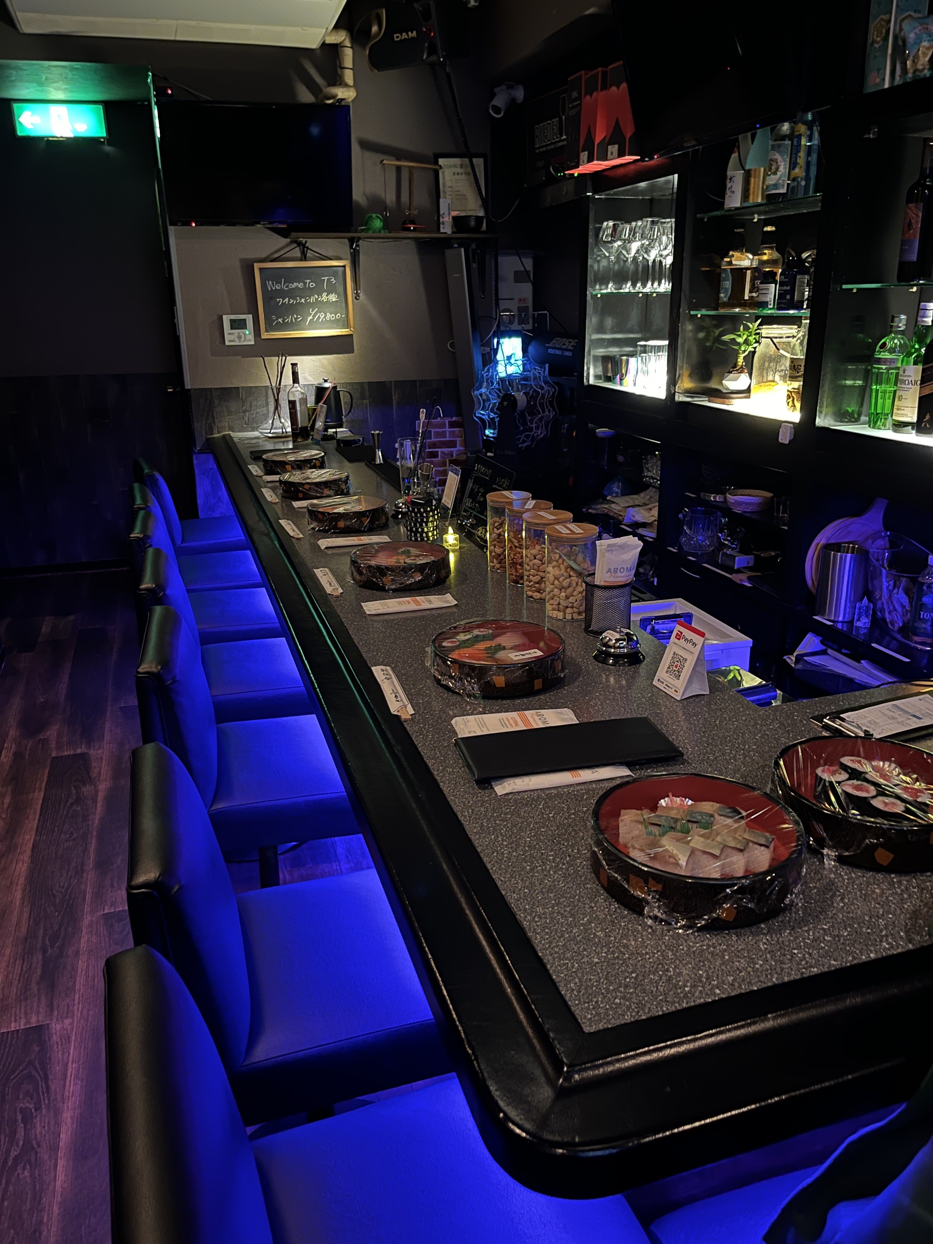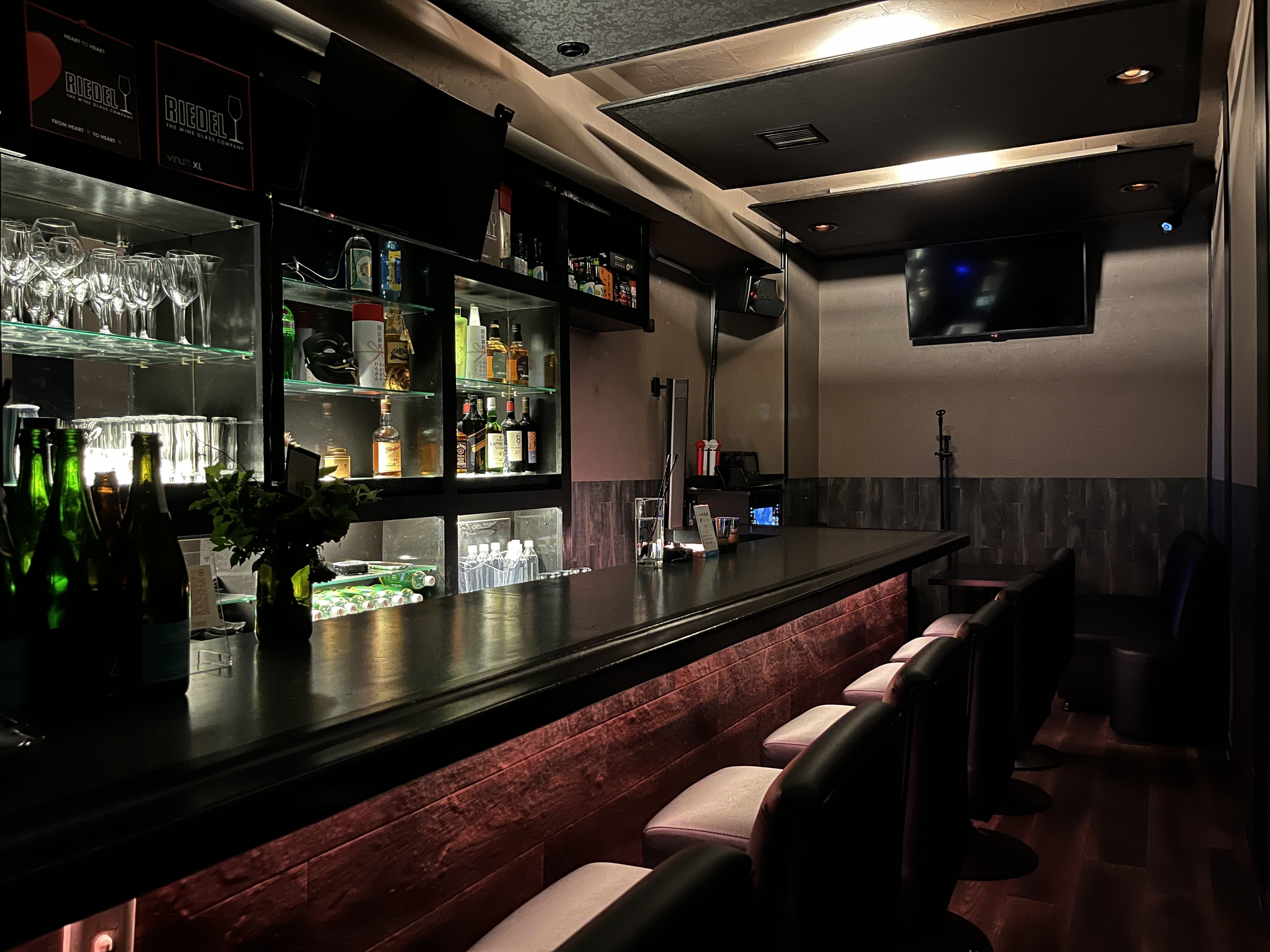 音響担当TSUMURA「私は20年間、音楽のお仕事に従事しています。その事から人よりも音楽に関する感度が高く敏感で、普段会食に行く度に感じていた事は、バックミュージックで良い音を出すBARが本当に少ないことです。また、カラオケがあるお店でも満足いく音響のBARはほとんどありませんでした。そこで、音響機器の選定から施行まで自ら行い、どの席からも満足できる音響環境を作りました。20年間日本1の音響会社で学んだ知識と、全国200箇所以上でのコンサートの音響担当の経験を活かし、T³では心踊る音響体験を提供しています。ぜひ一度、音楽とともに素晴らしい夜を過ごしに来てください!」