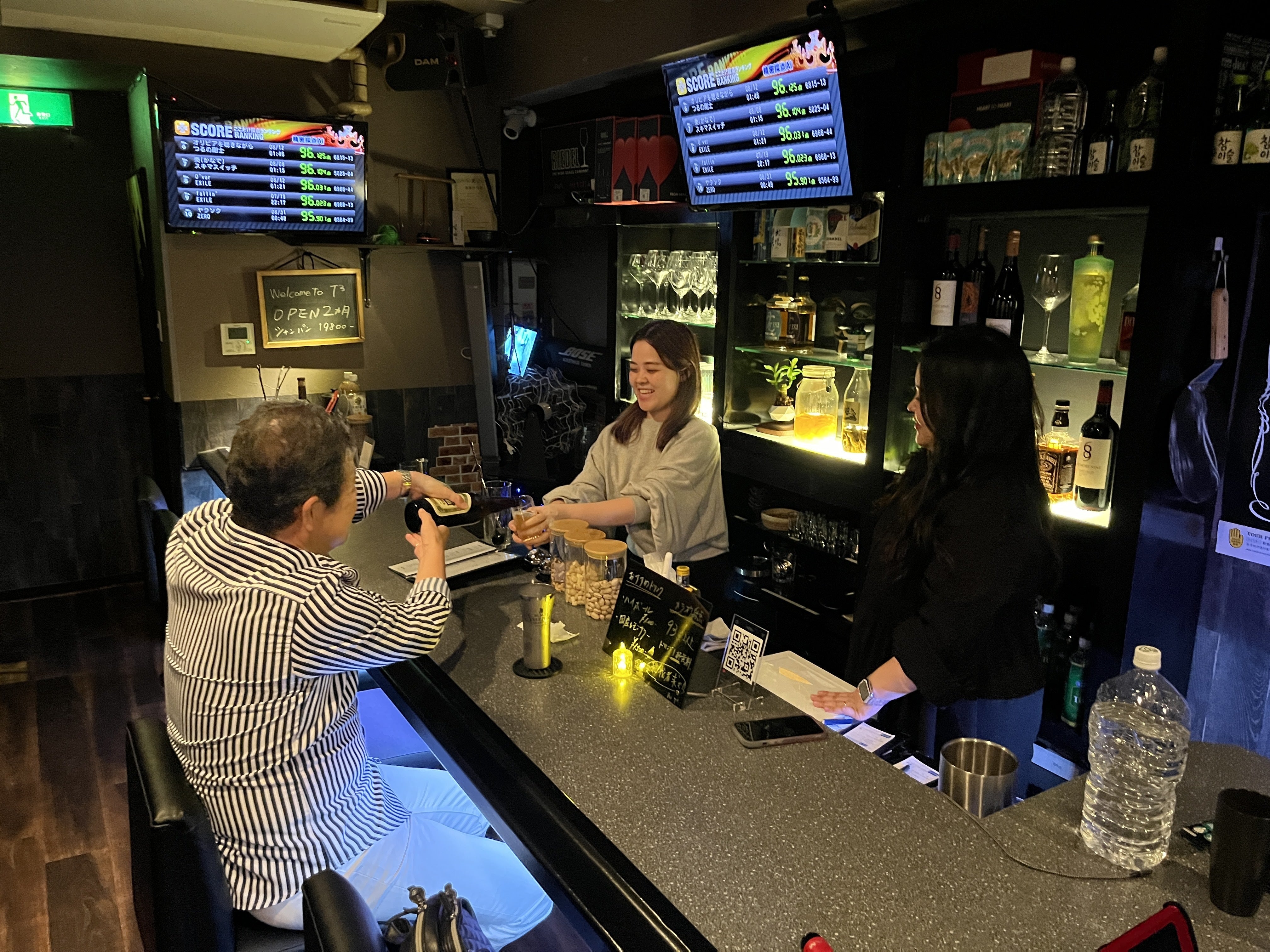 マネージャーLEE「初めまして、T³は自宅や職場とは違う特別な『第3の場所』を目指し、ブランド名をT3(ティースリー)としました。お客様がリラックスできるよう、暗証番号で限られたゲストのみが入店できる設計をしています。また、私自身、国内外100箇所以上の様々なバーを訪れた経験から、お店のデザインやコンセプトを『自分達なら行きたいかどうか』を基準に作り上げました。音響設備やドリンクメニューにもこだわり、皆様に健康的で活気溢れる場所を提供したいと思っています。」