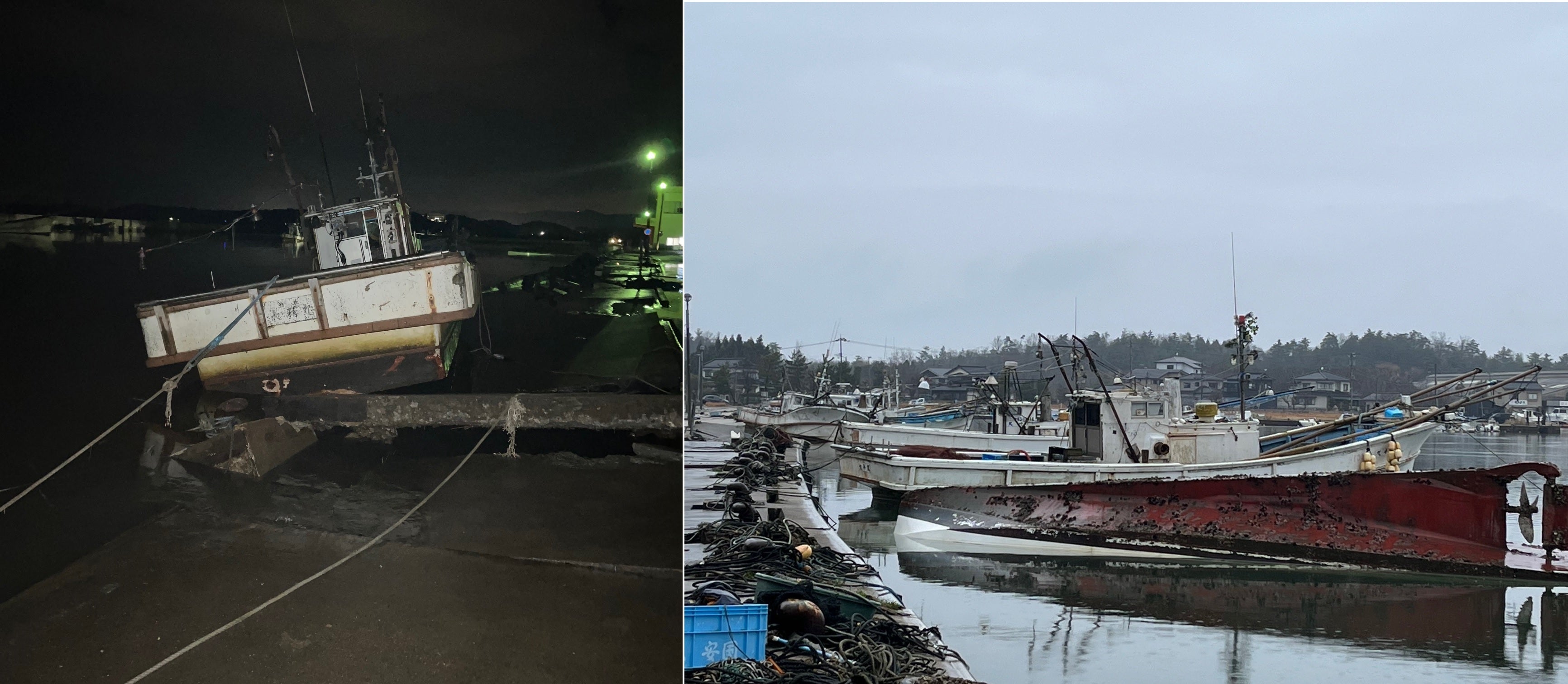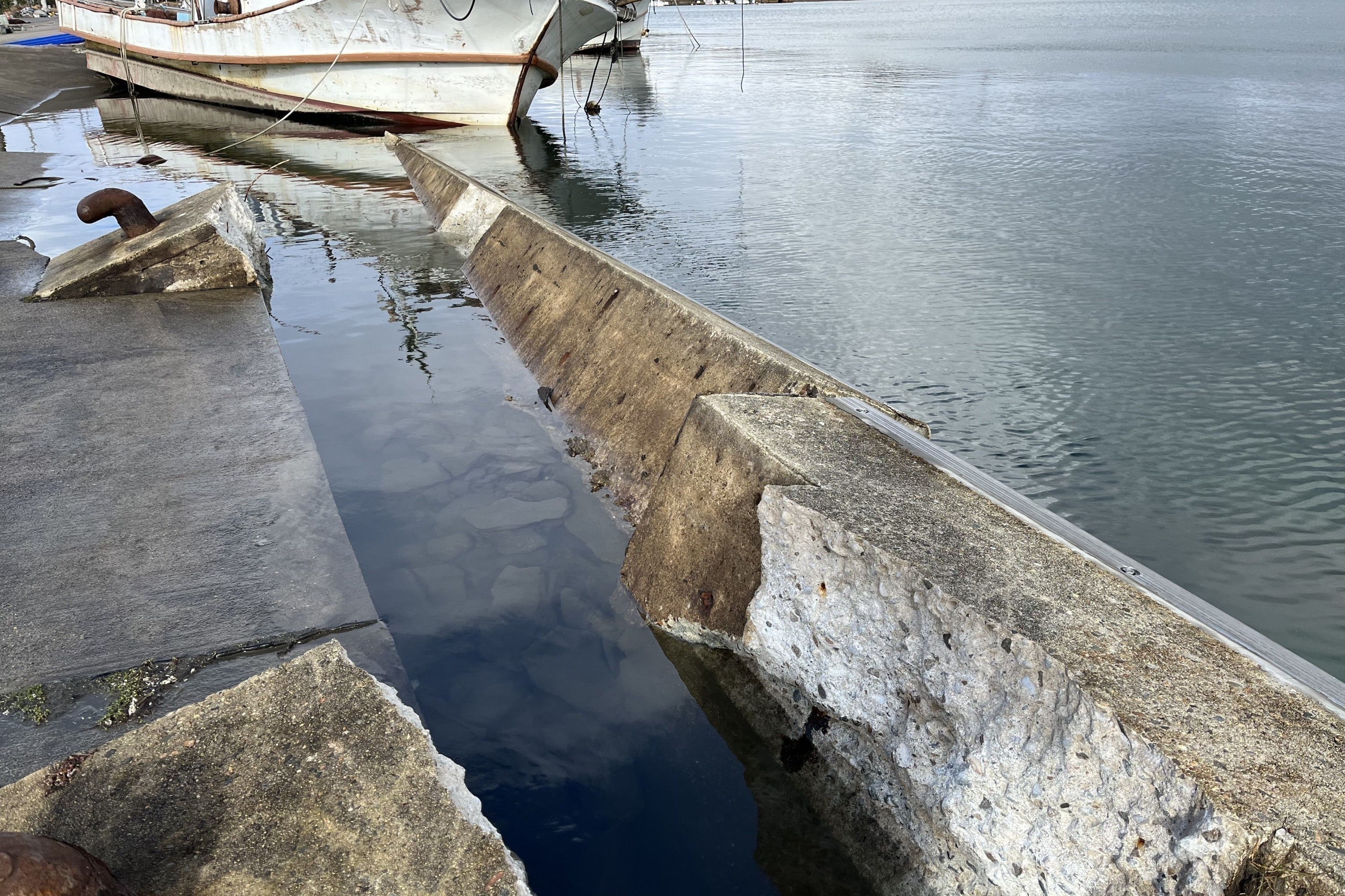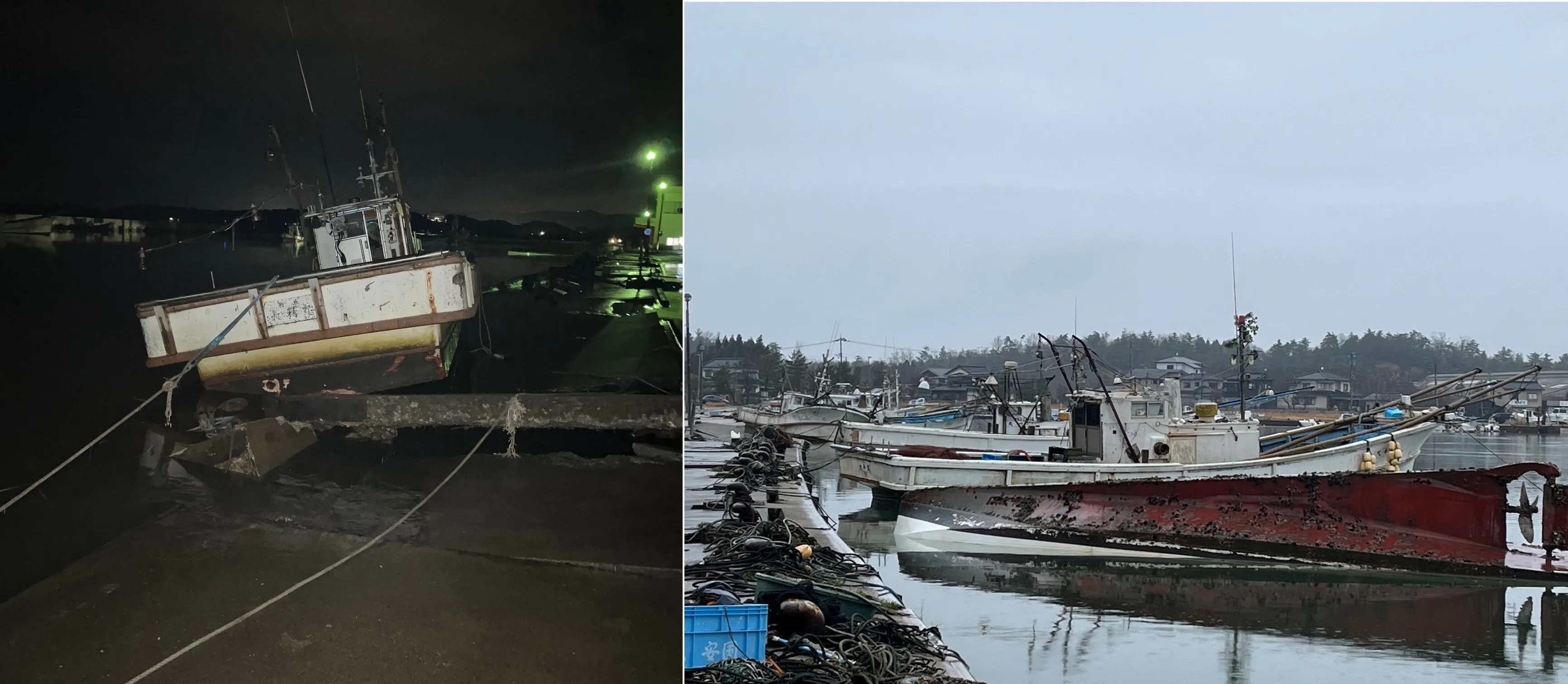 港や仲間の船の状況を確認しに行くと漁港全体の岸壁、防波堤が壊れ、仲間の船もあちこちで流されたり座礁、転覆していました。