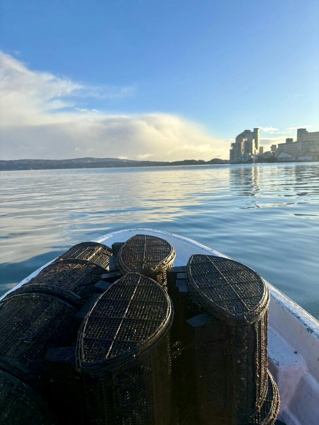 しかし牡蠣の稚貝は手元に戻り、海に設置した篭(バスケット)は変わらず残っていたのです。