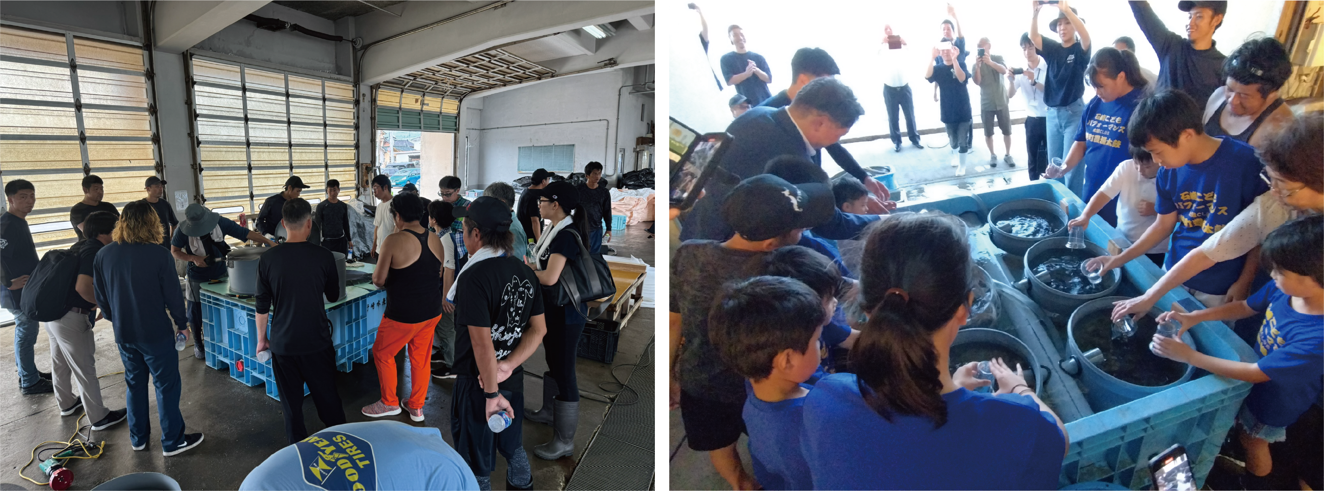 この装置に市長や子供たち、そして全国の漁師と一緒に稚貝を投入しました。