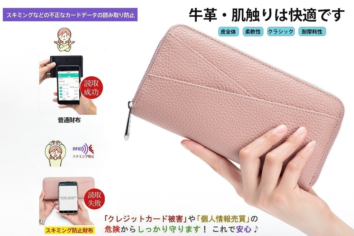 レディース長財布 小銭入れ スキミング防止 ウォレット 上質牛革 大容量