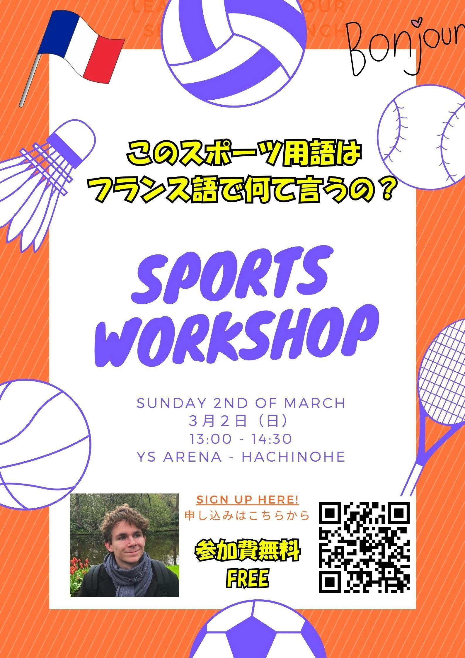 スポーツが好き!フランス語に触れてみたい、ARTHURとお話したい方、是非ご参加ください。