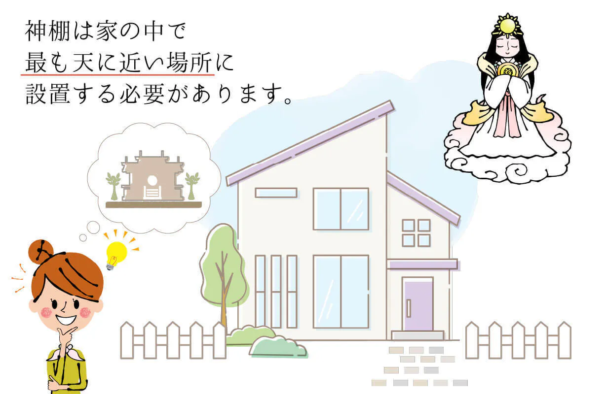 神棚は神様のおわす神殿ですので、本来であれば神棚の上に人が住むような場所にお祀りすることはタブーとされます。上の階の人が絶えず神棚を踏む状況がとても畏れ多いという考えに基づくものですが、これを忠実に実践するとなると、戸建てなら1階以上の部屋に、集合住宅なら最上階の人でないと神棚を設置できなくなってしまいます。