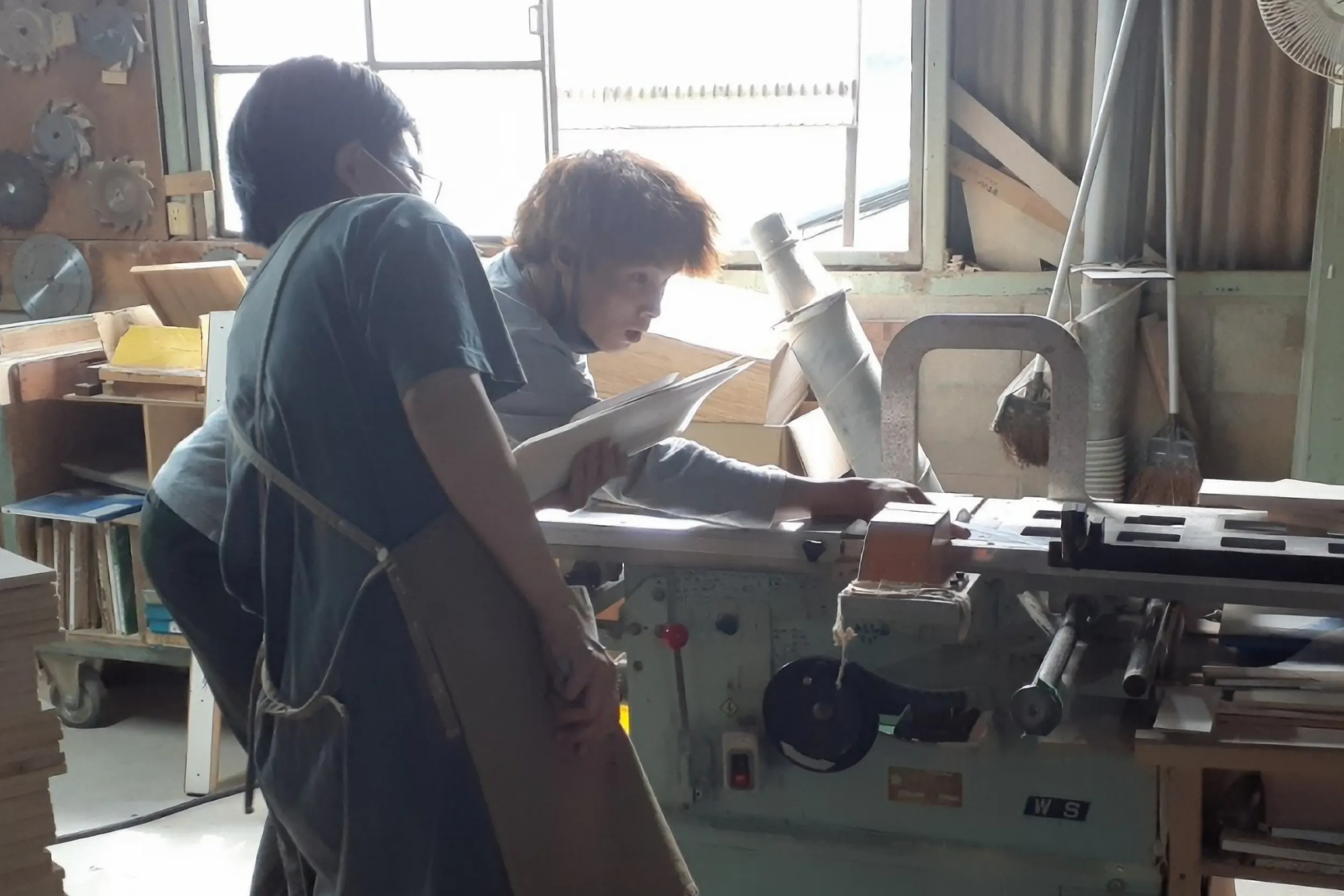 池田氏とのやり取りを経て完成した素晴らしいデザインを手に、次はそのデザインを形にしてくれる工房を探し求め、高級家具の代名詞「府中家具」の産地、広島県府中市にある豊田産業との協業が実現しました。