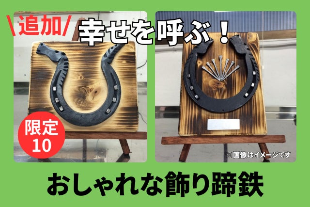 馬たちが使用したそのままの蹄鉄と、装蹄師が作ってくれる「飾り蹄鉄」を追加でご用意しました。
