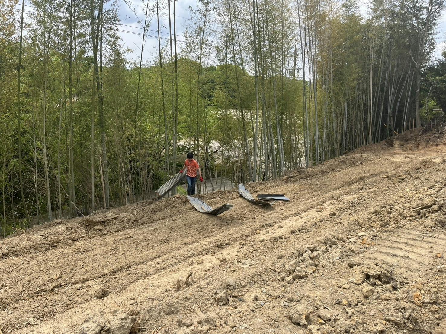 今は、竹の根や茎、ガレキを砂と分けながら、ひたすら土を運び出す作業の真っ最中。