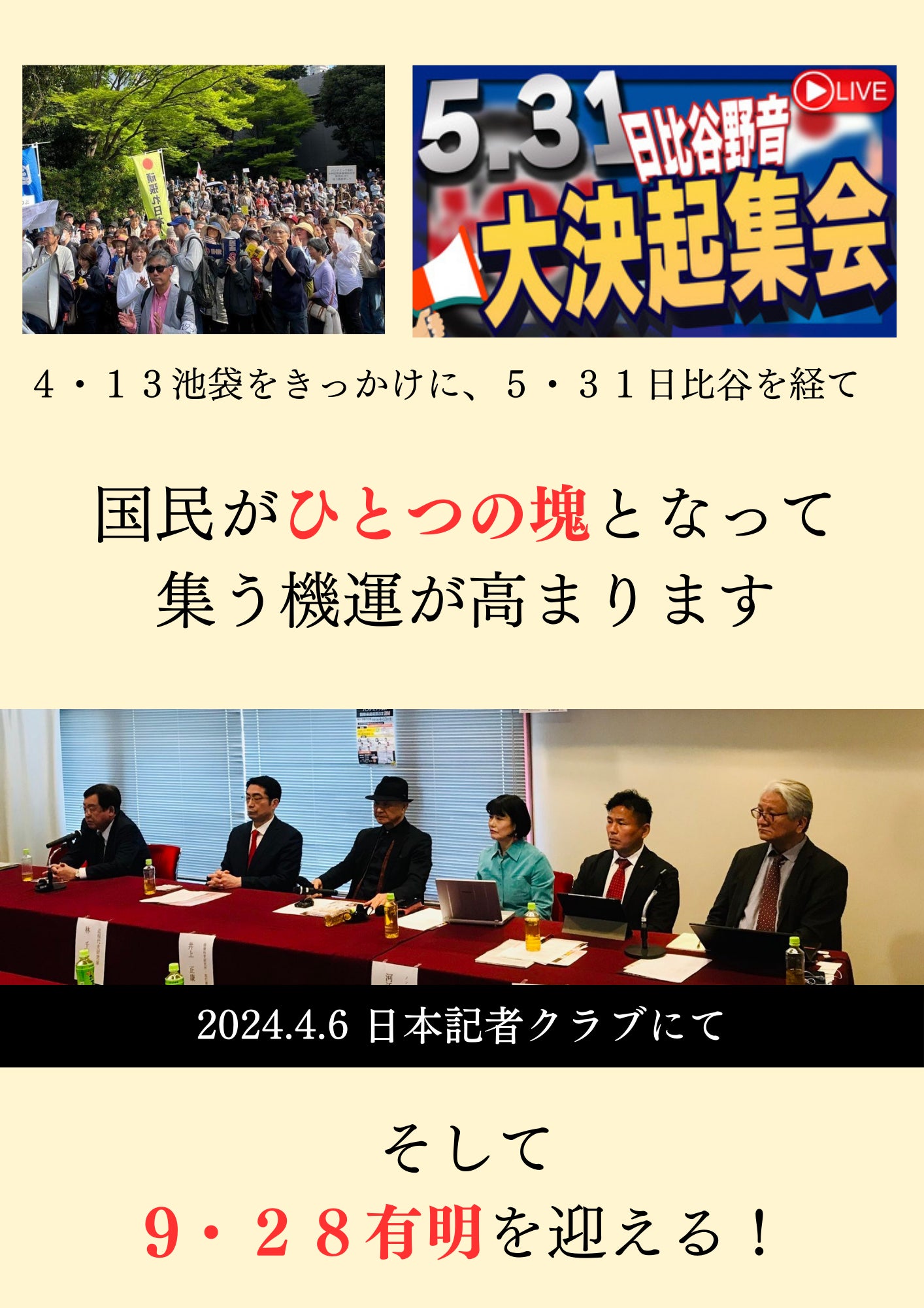 子どもも大人も、右も左も政治思想も一切関係なく、日本の未来のために一円融合する、歴史的な尊い国民集会になることを願っています。