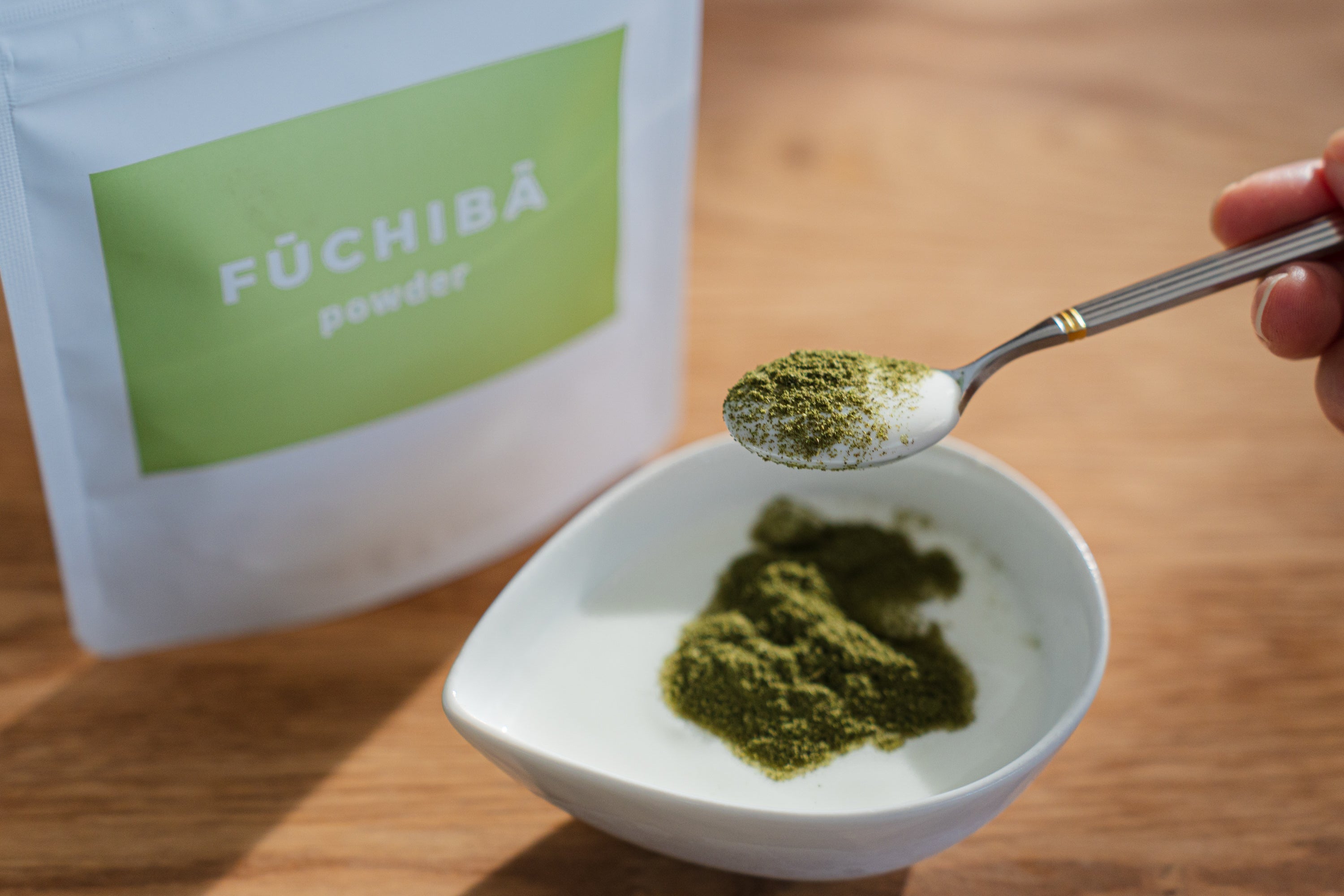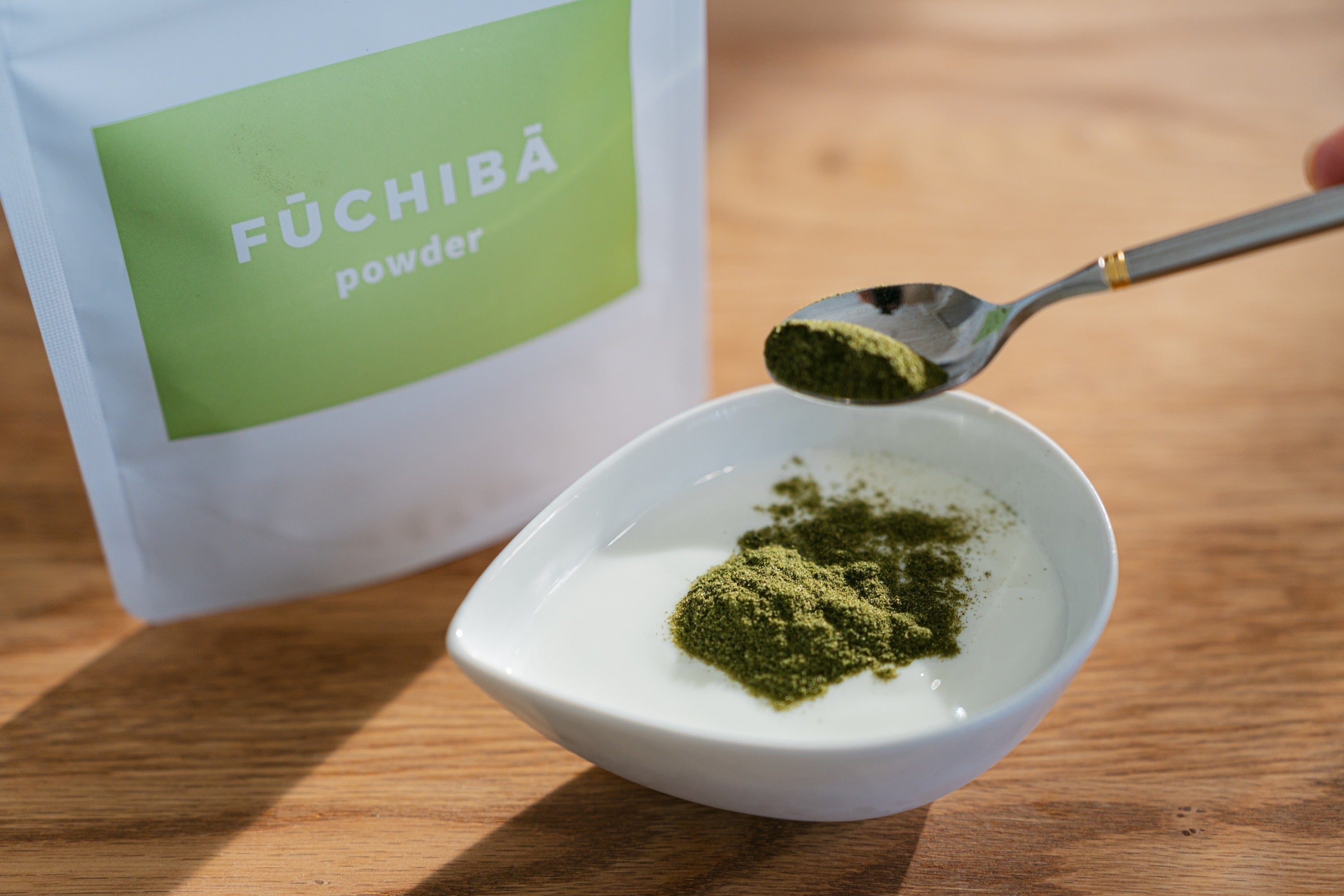 よもぎパウダー小さじ1とお好みの フルーツやヨーグルトと一緒に ブレンダーで混ぜて、栄養たっぷりのスムージーとしてお楽しみください。