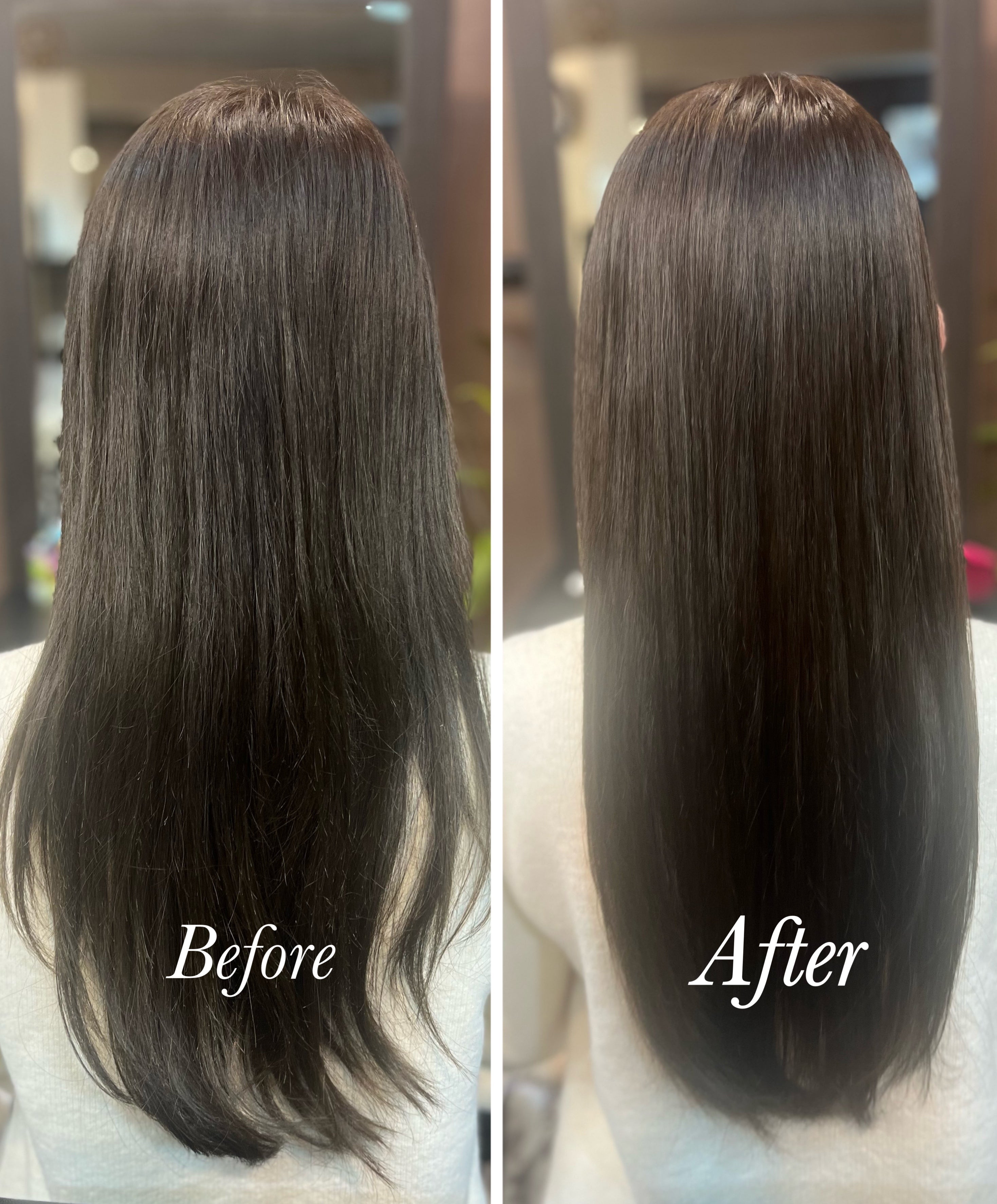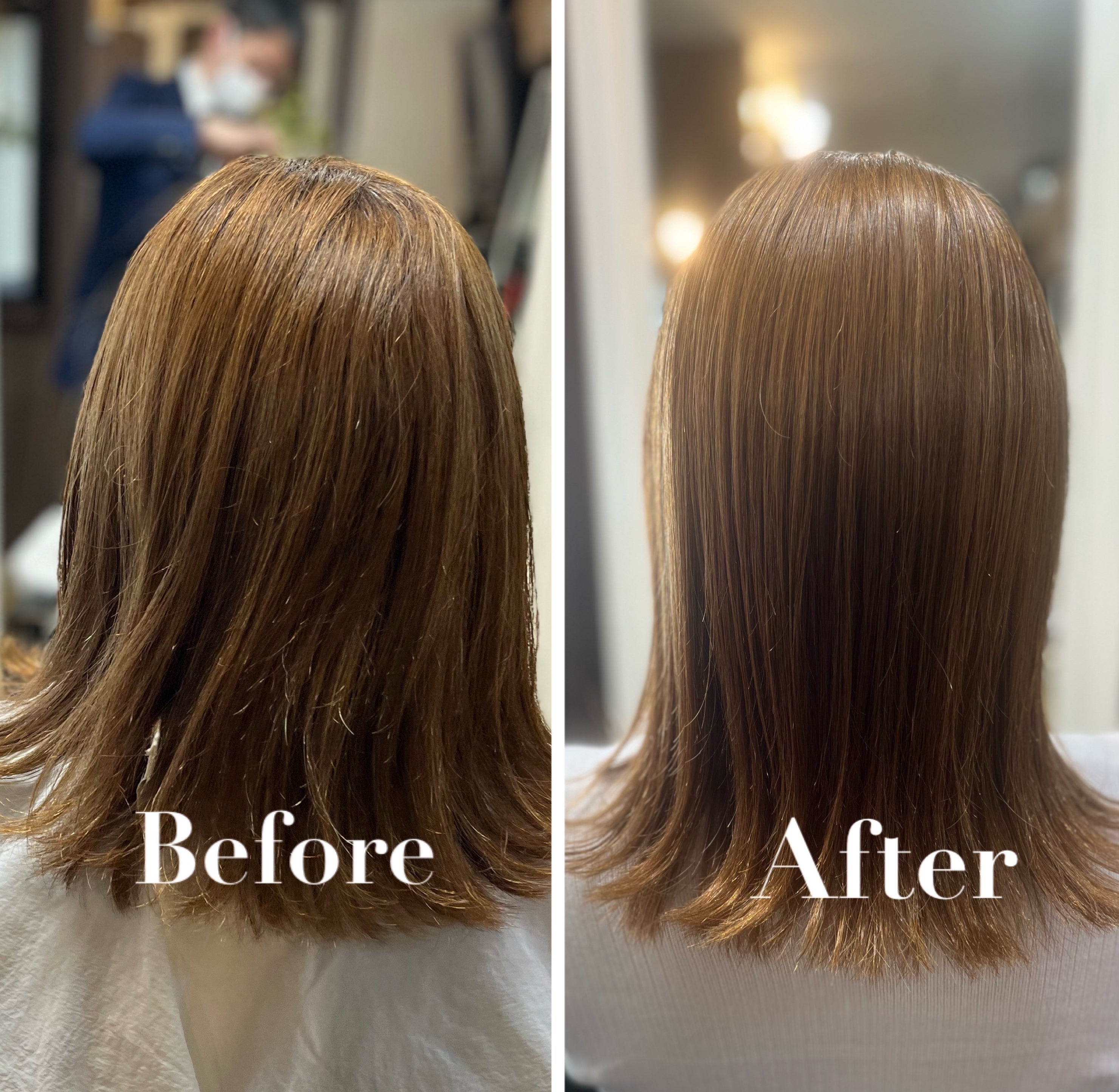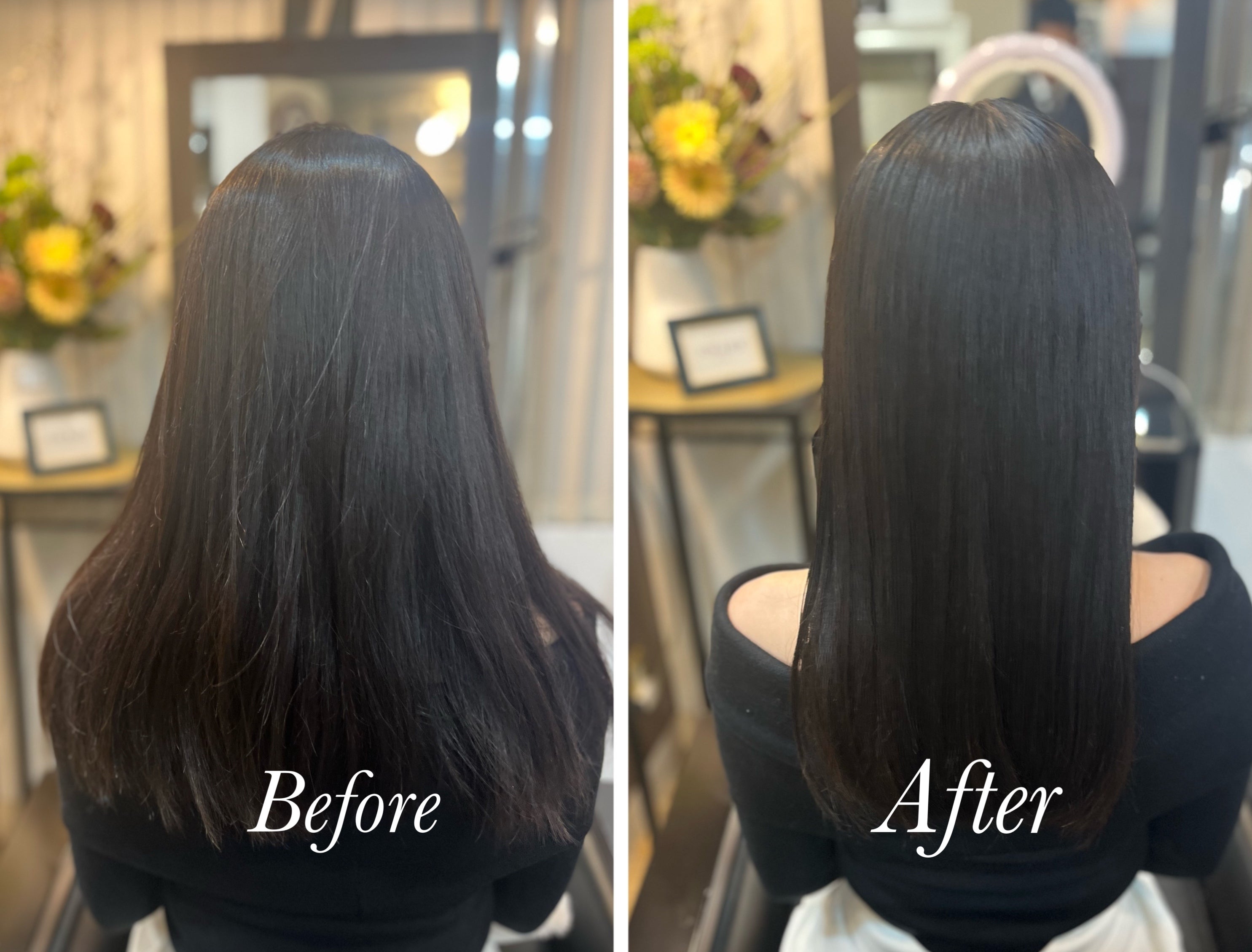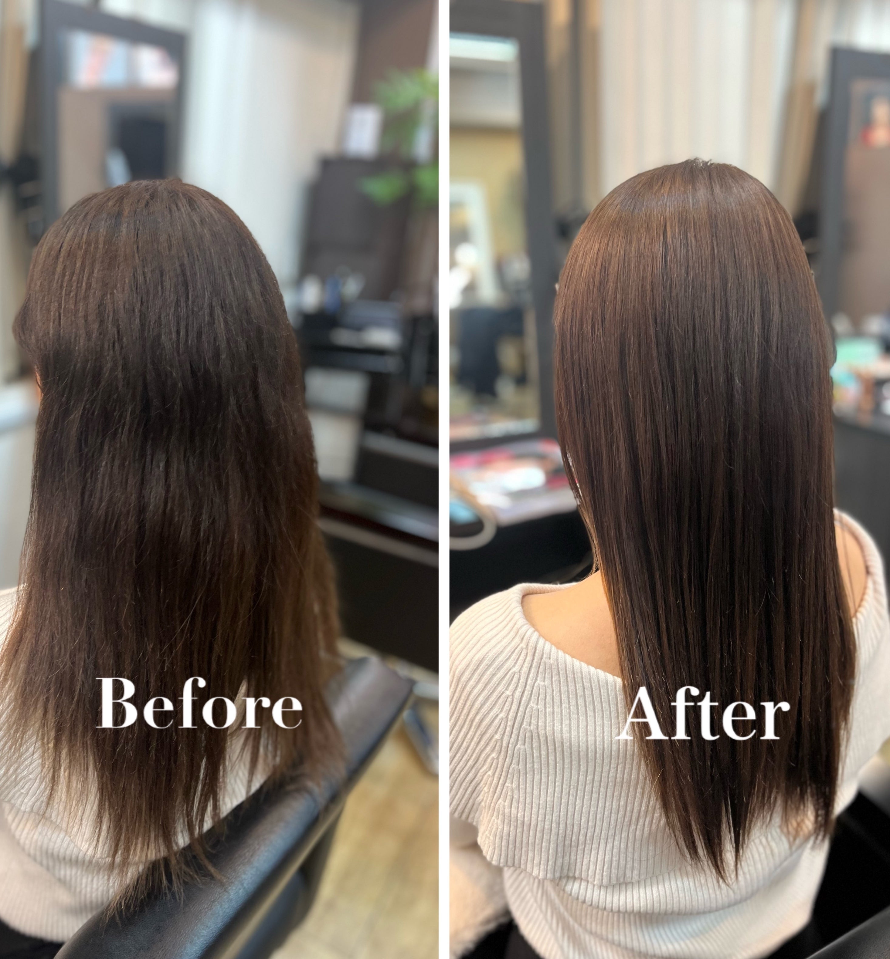 所定の時間が経過したら、トリートメント剤を洗い流し、仕上げのブローやスタイリングを行います。最後に、しなやかでツヤのある髪が完成します。