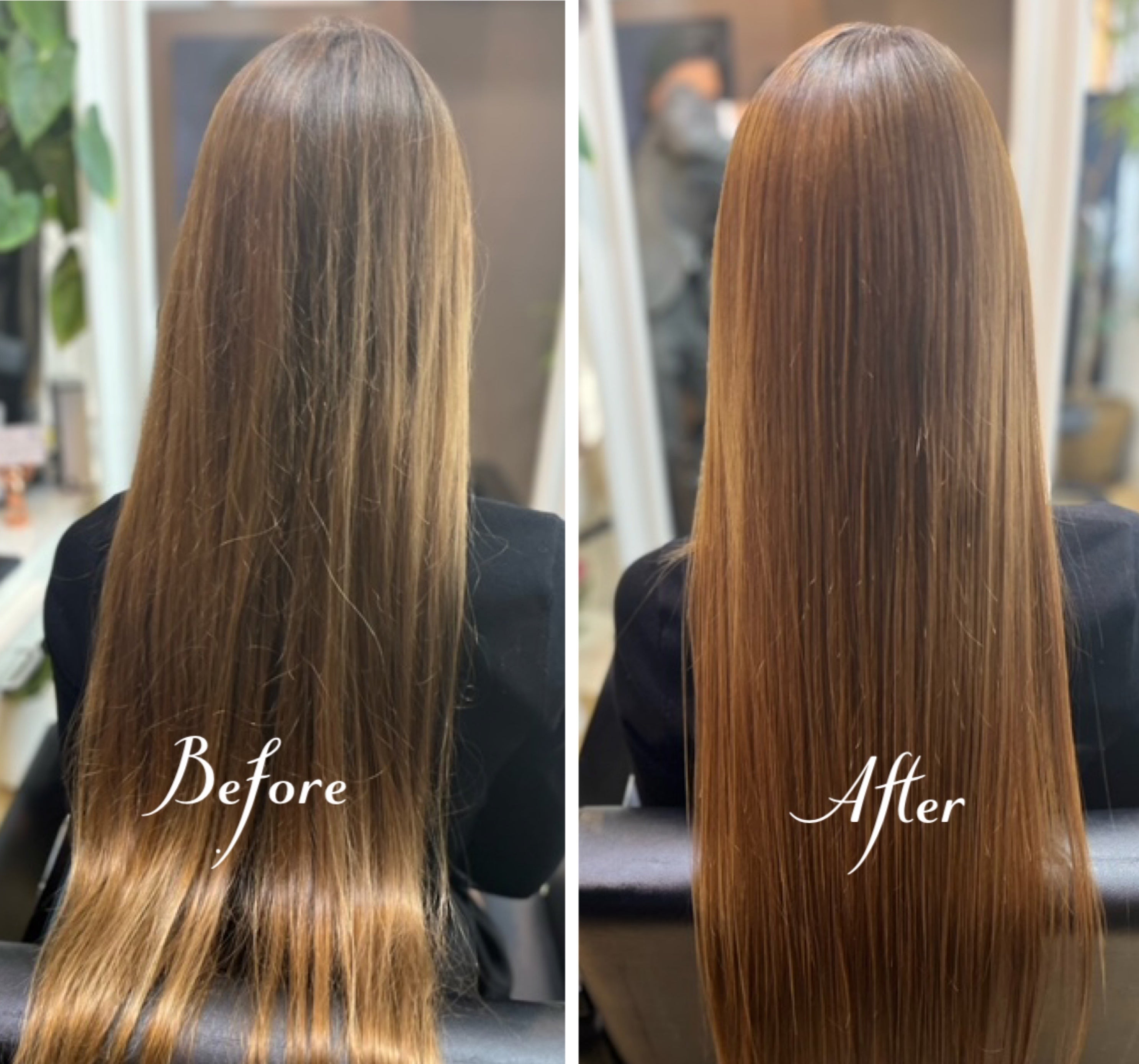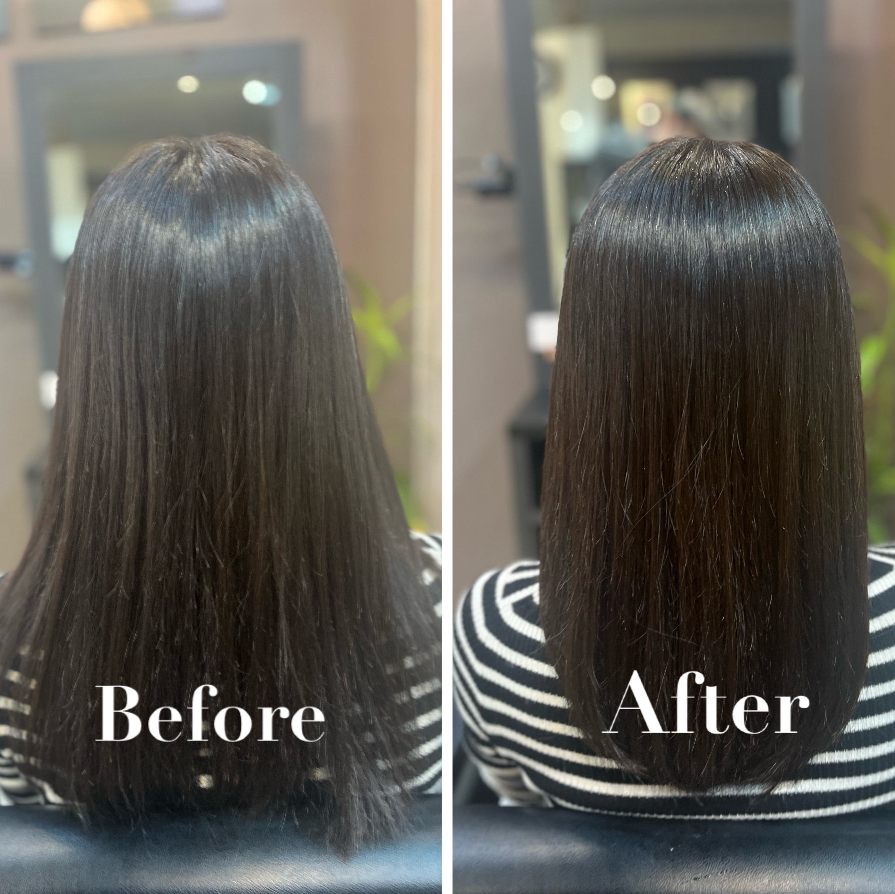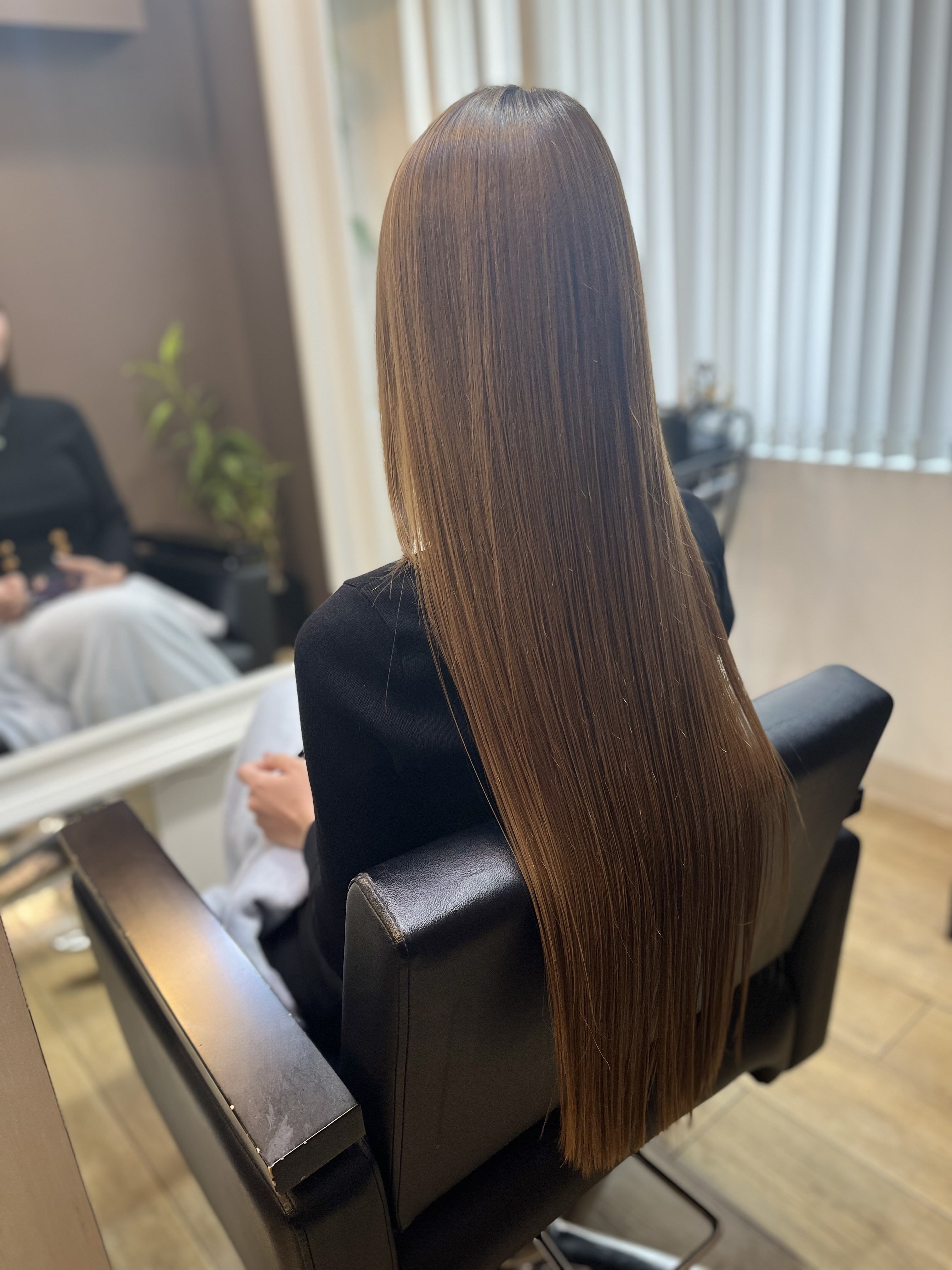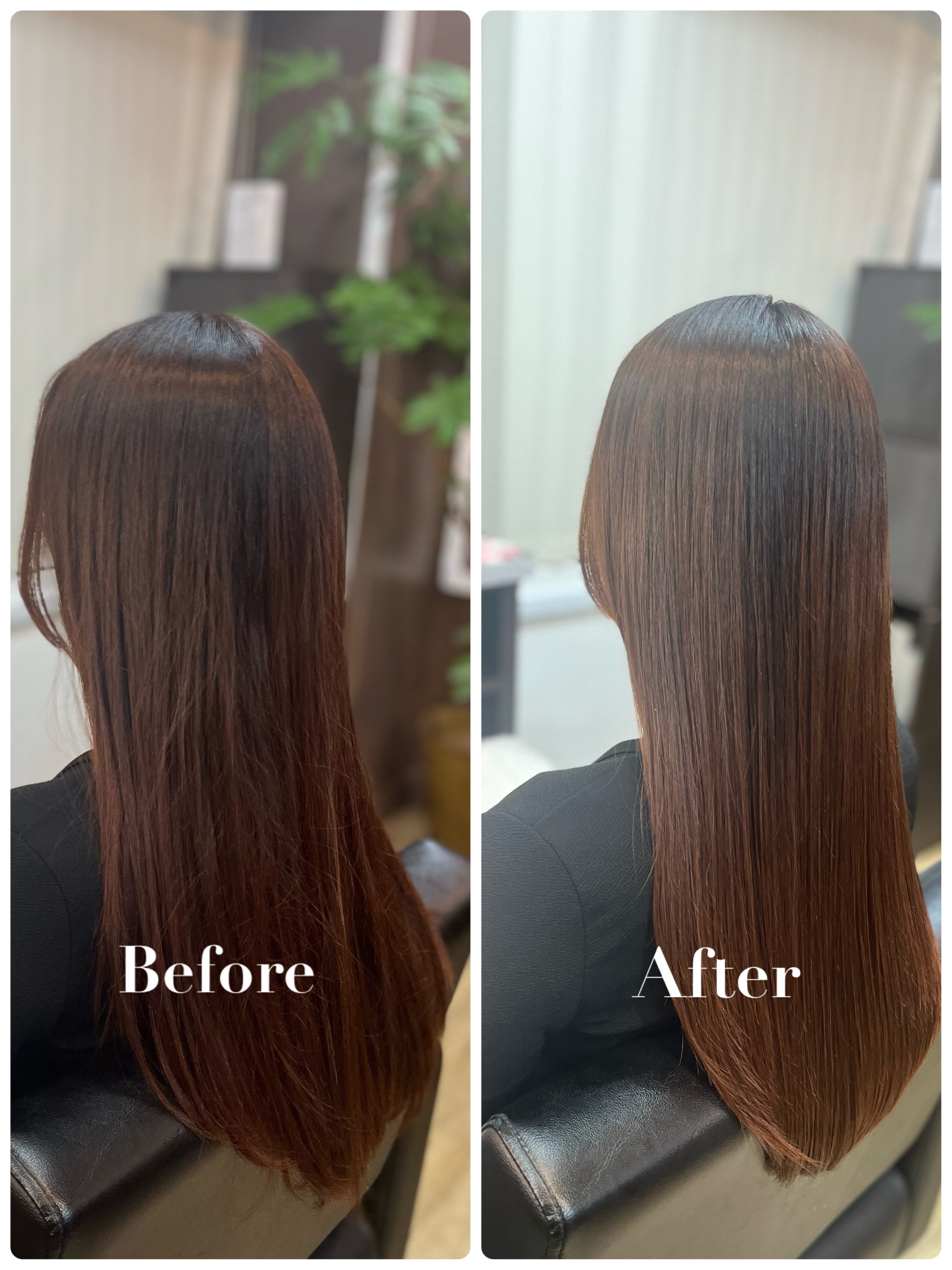 所定の時間が経過したら、トリートメント剤を洗い流し、仕上げのブローやスタイリングを行います。最後に、しなやかでツヤのある髪が完成します。