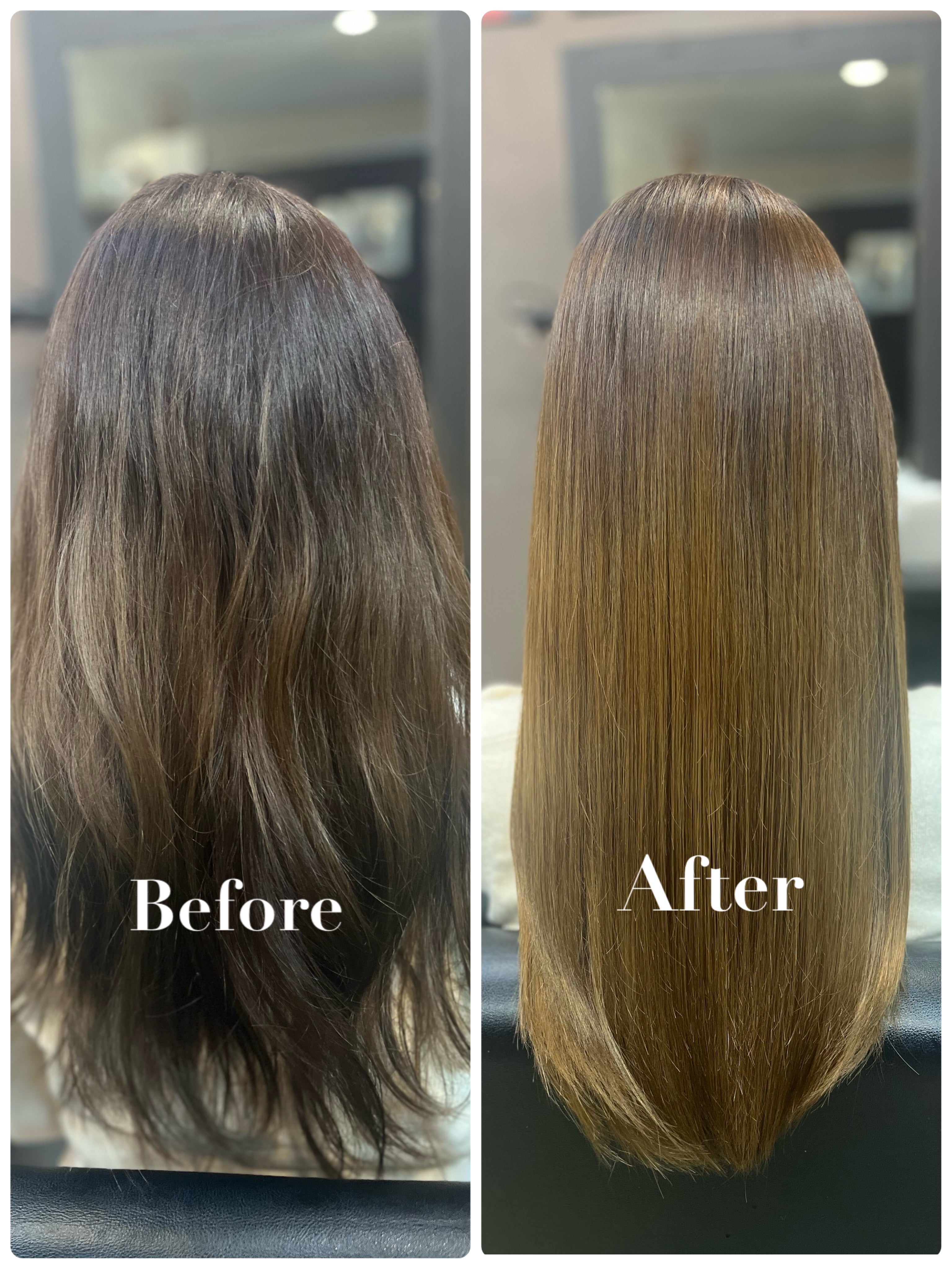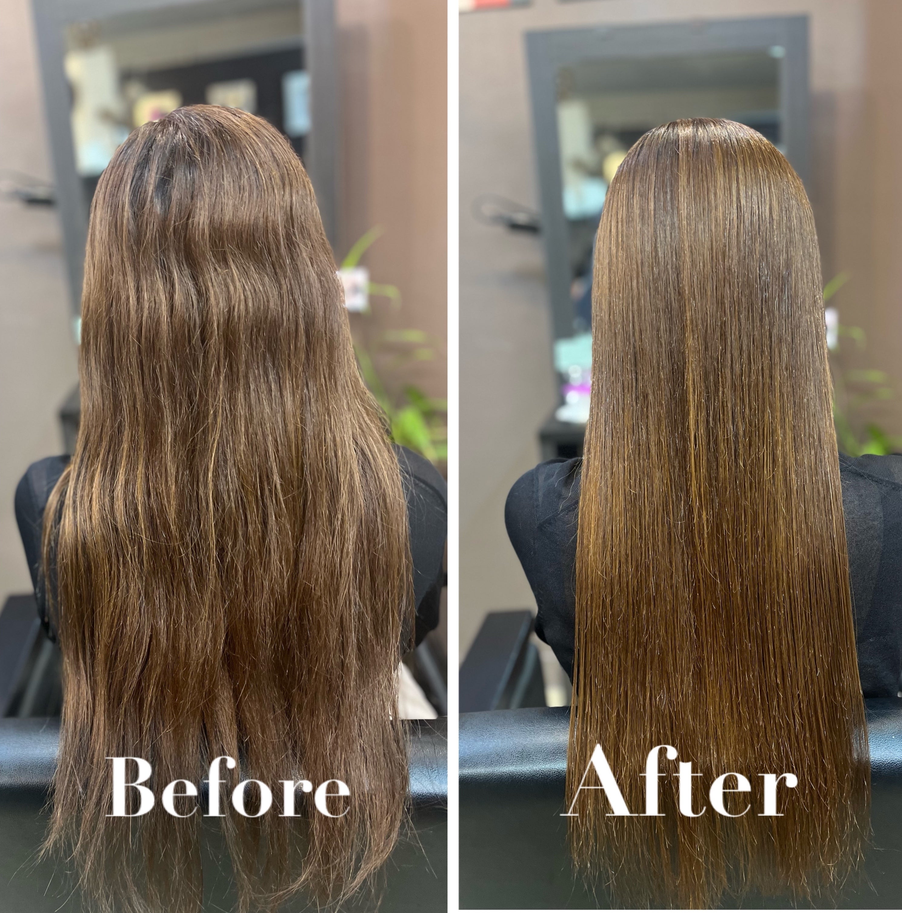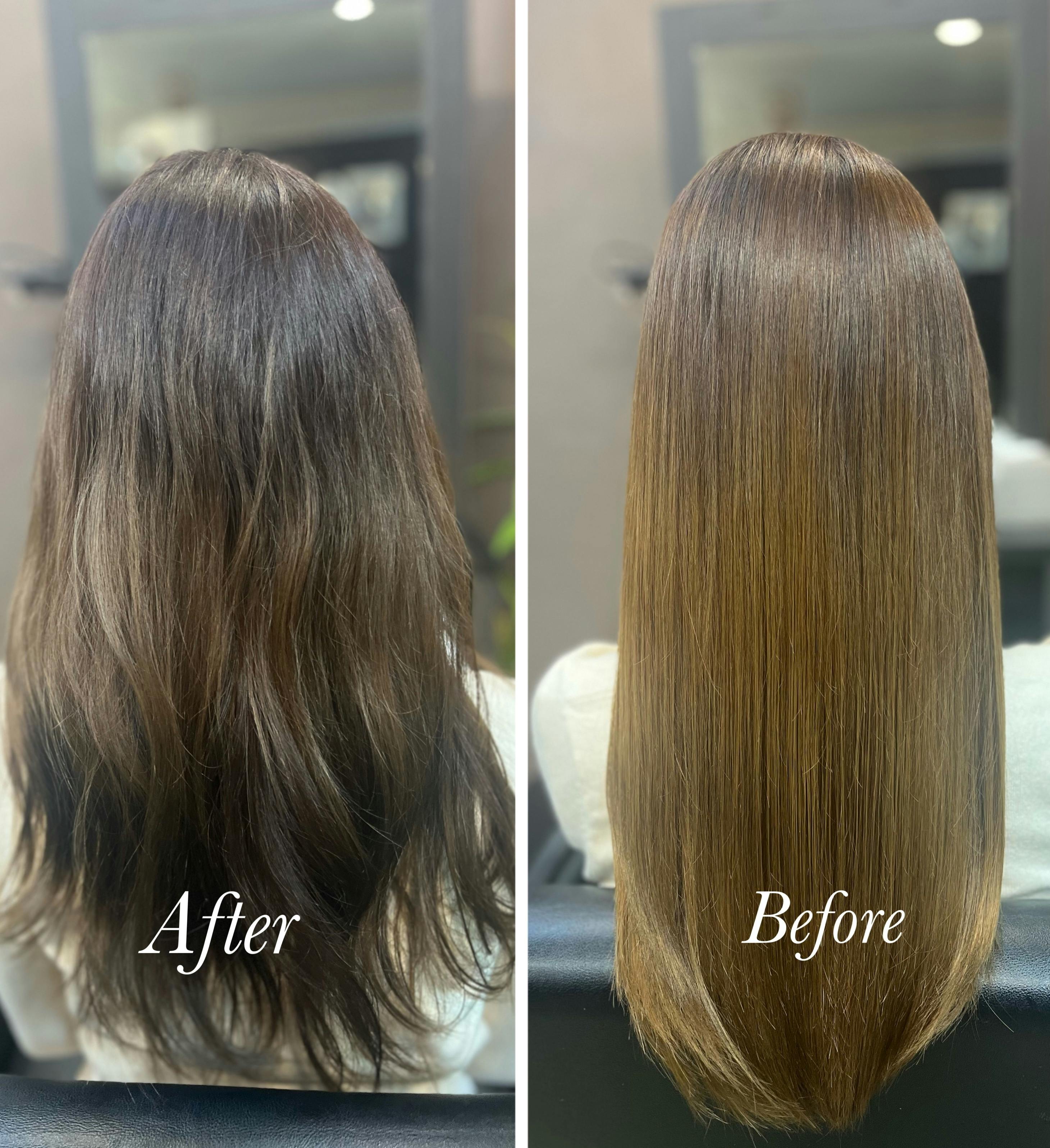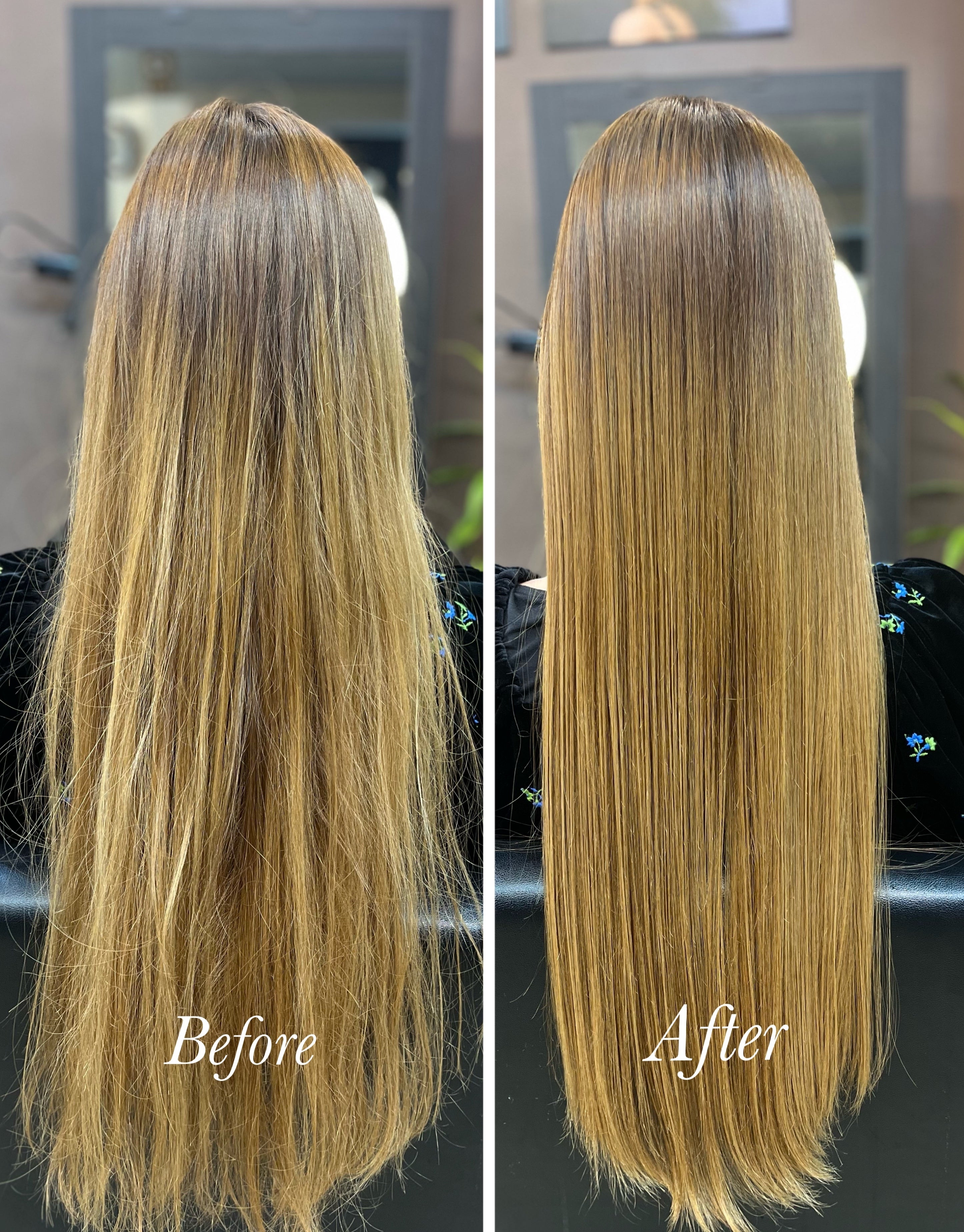 所定の時間が経過したら、トリートメント剤を洗い流し、仕上げのブローやスタイリングを行います。最後に、しなやかでツヤのある髪が完成します。