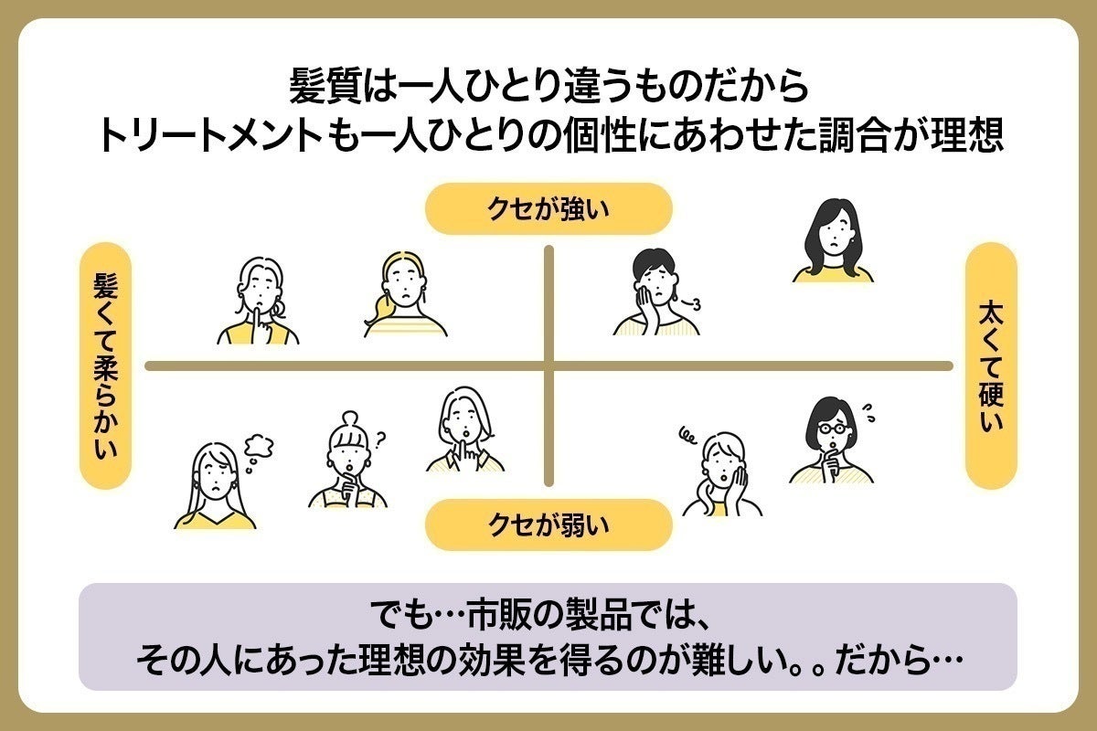 私たちが実現したいのは、美とリラクゼーションの両面からお客様をサポートする場所を提供することです。お客様の悩みにしっかり向きあいトリートメント&ヘッドスパ専門店では、日々の髪の毛のダメージと頭のストレスや疲れを癒し、ヘアと頭のリフレッシュさせることができます。特に、現代の忙しい生活の中で、自分自身を大切にする時間を作ることが難しい方々に、心地よい空間と時間を提供したいと考えています。